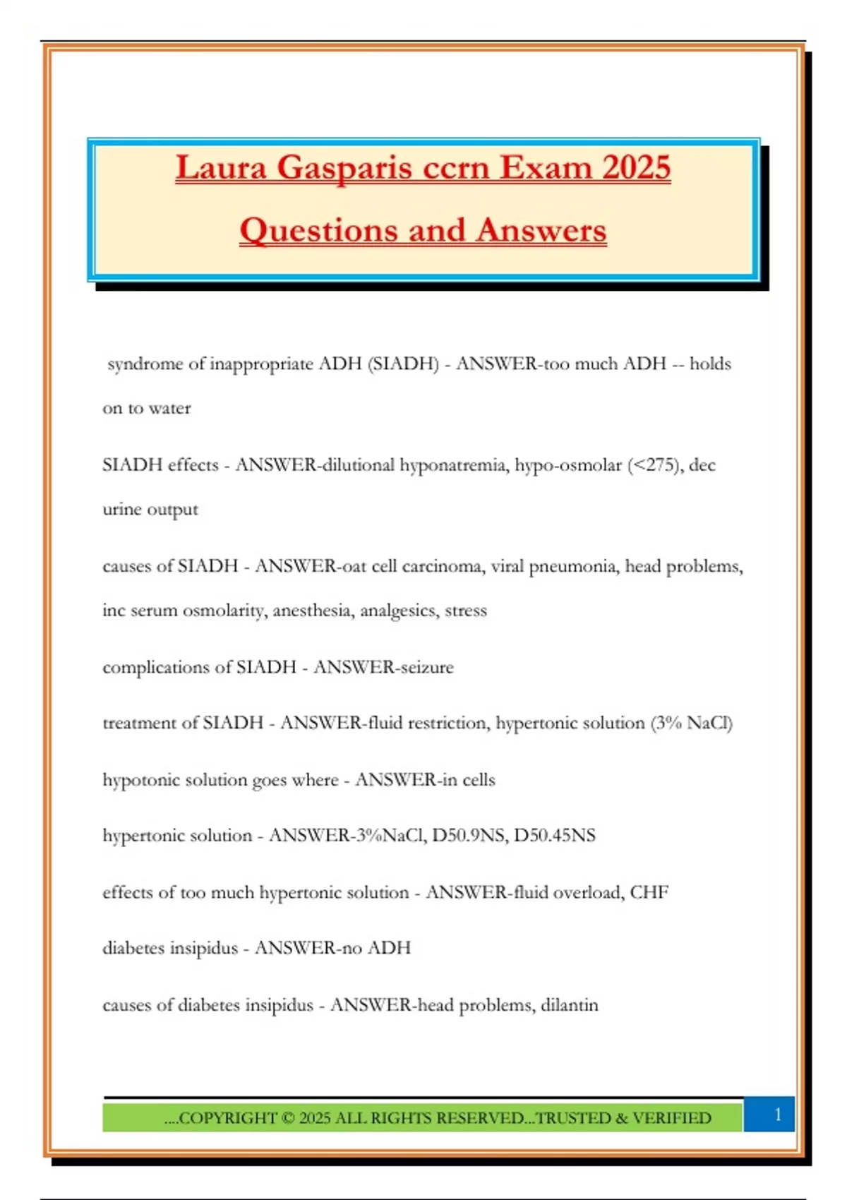 syndrome of inappropriate ADH (SIADH) - ANSWER-too much ADH -- holds