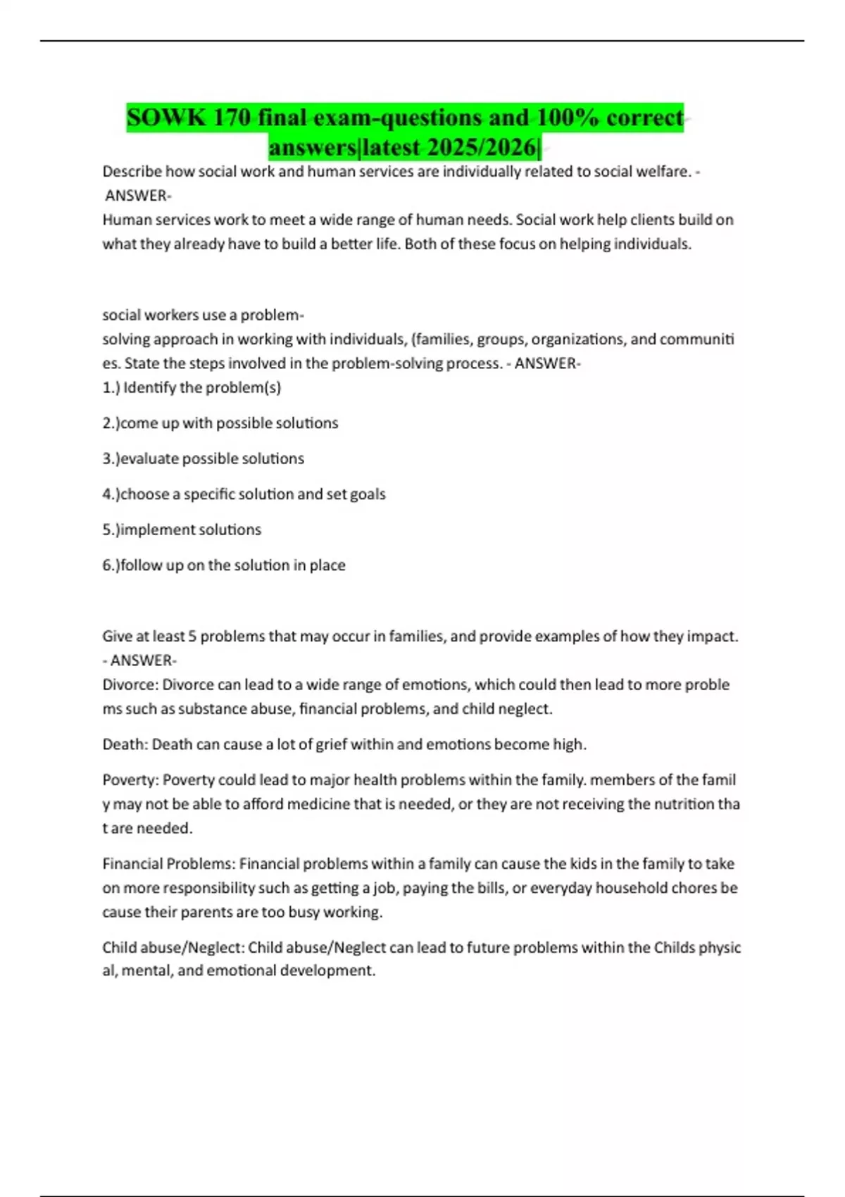 SOWK 170 final exam-questions and 100% correct