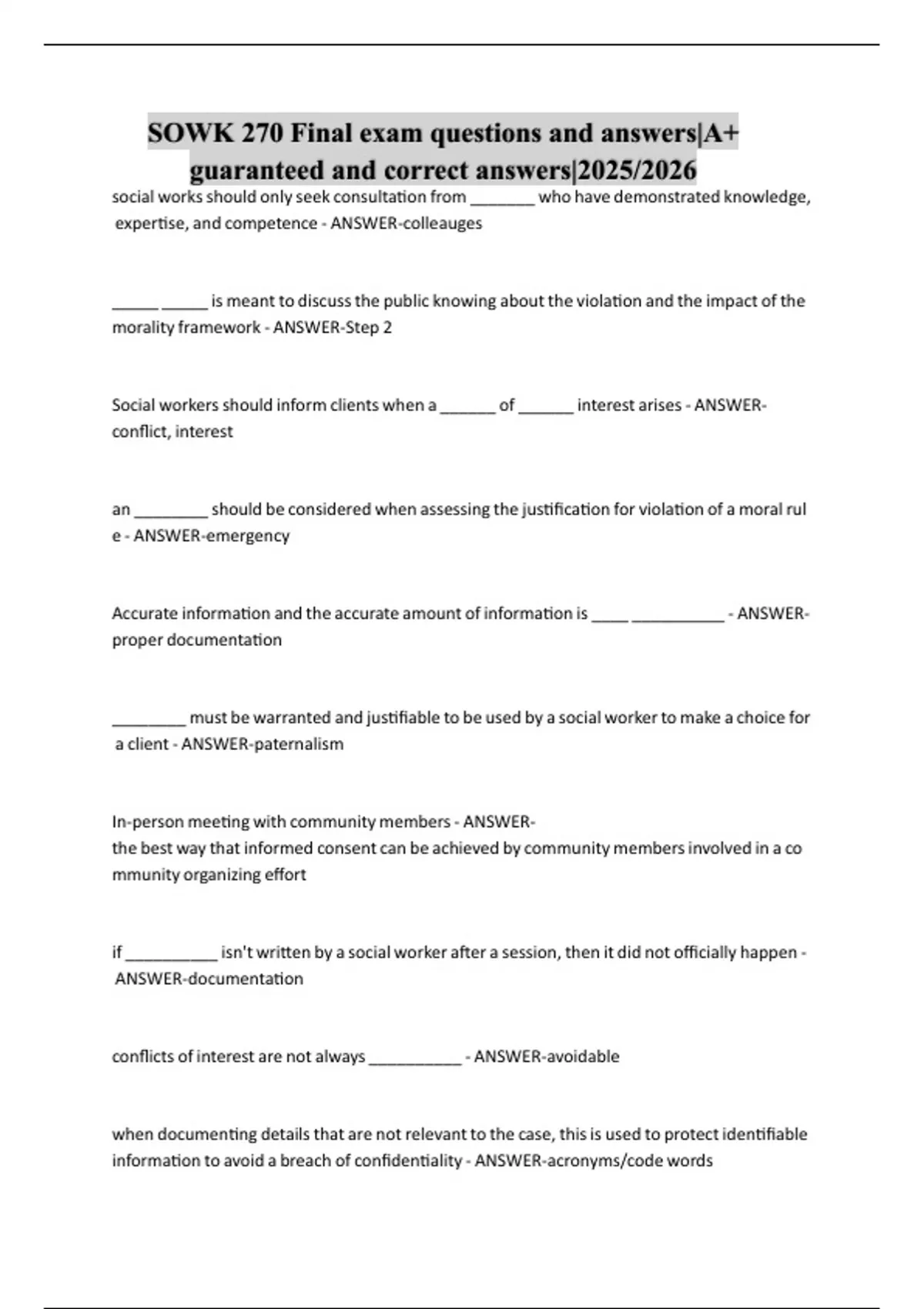 SOWK 270 Final exam questions and answers|A+