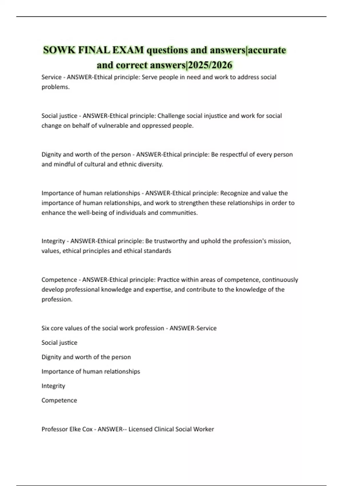 Professor Elke Cox - ANSWER-- Licensed Clinical Social Worker