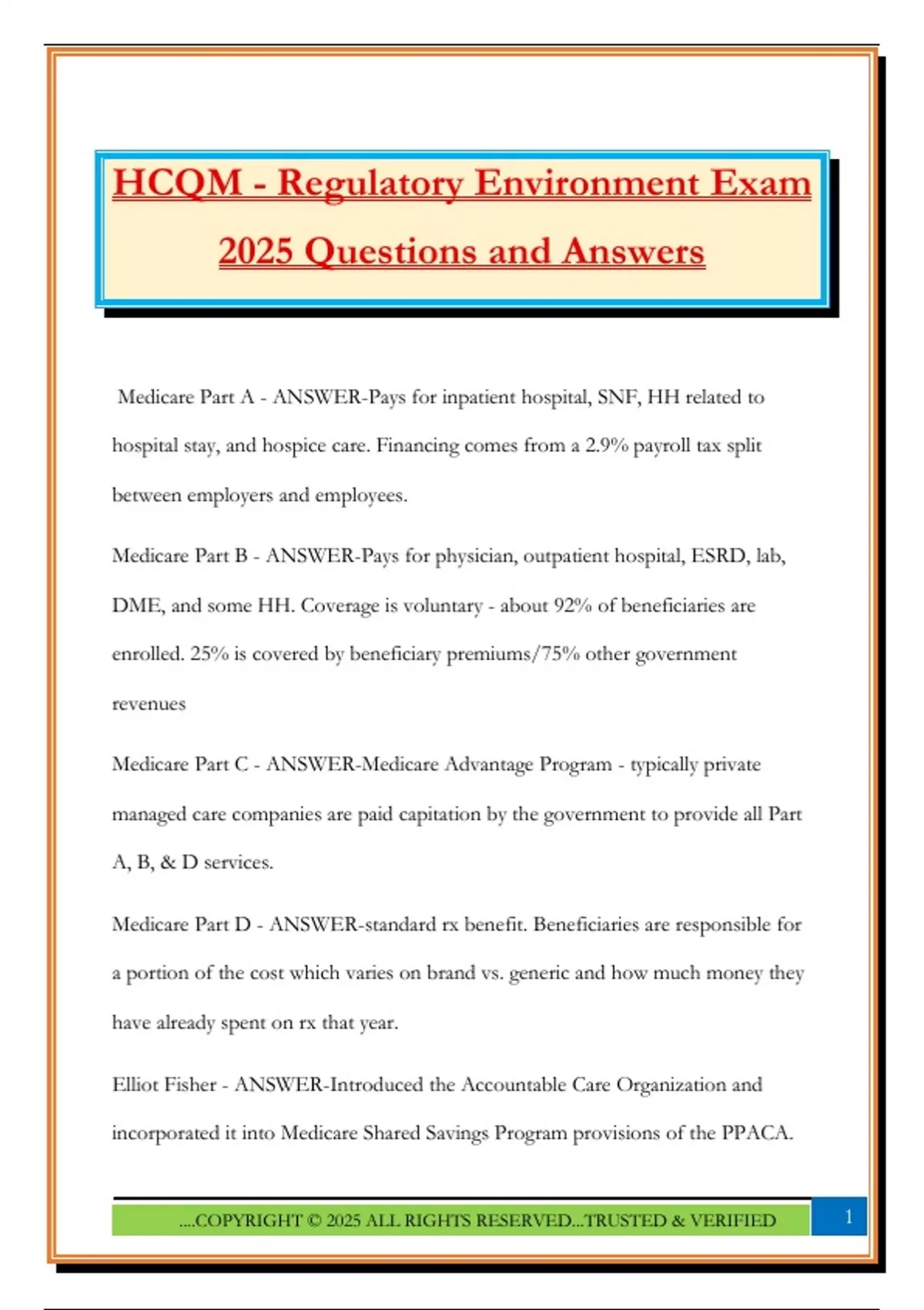 HCQM - Regulatory Environment Exam 2025 Questions and Answers