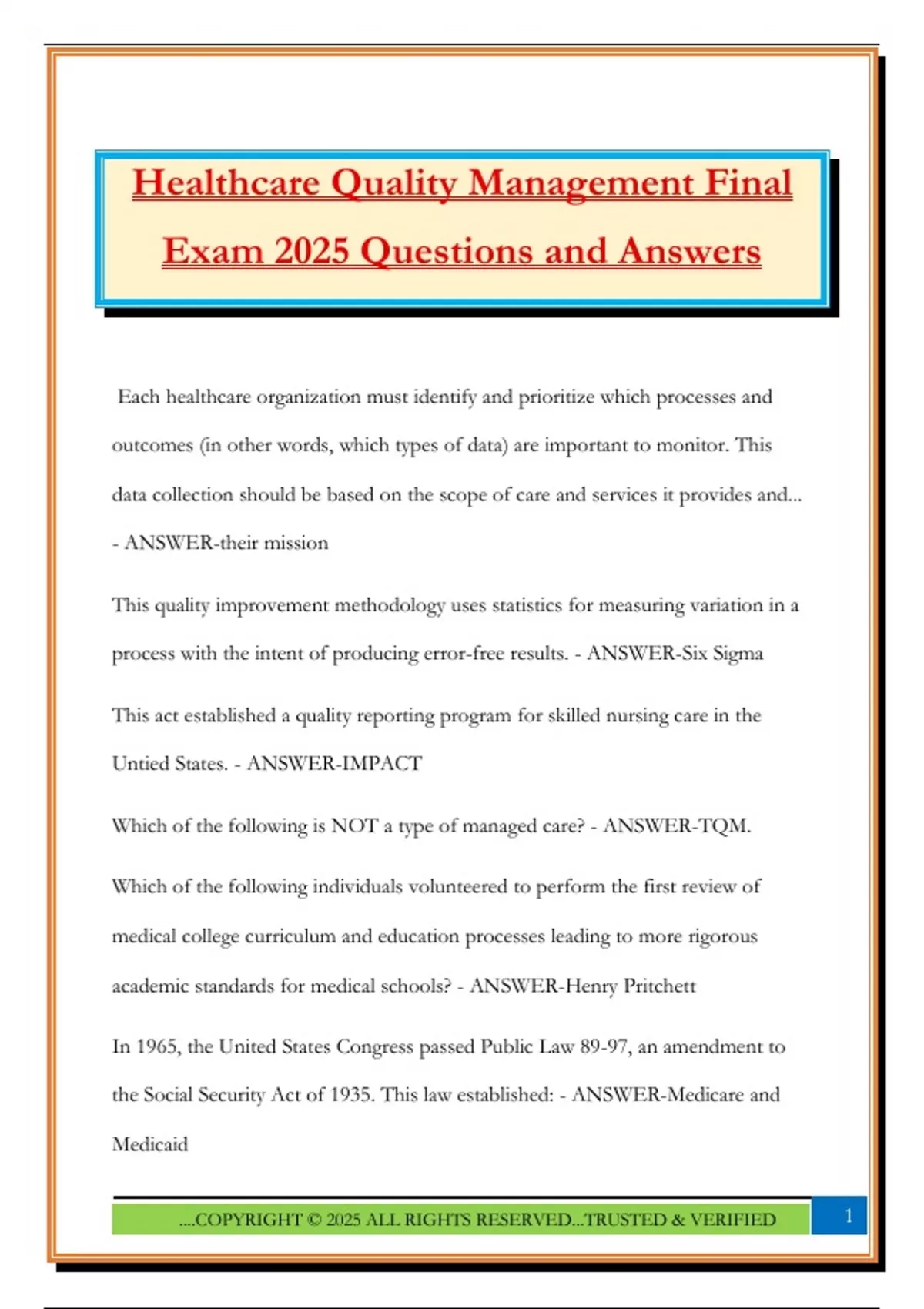 Healthcare Quality Management Final