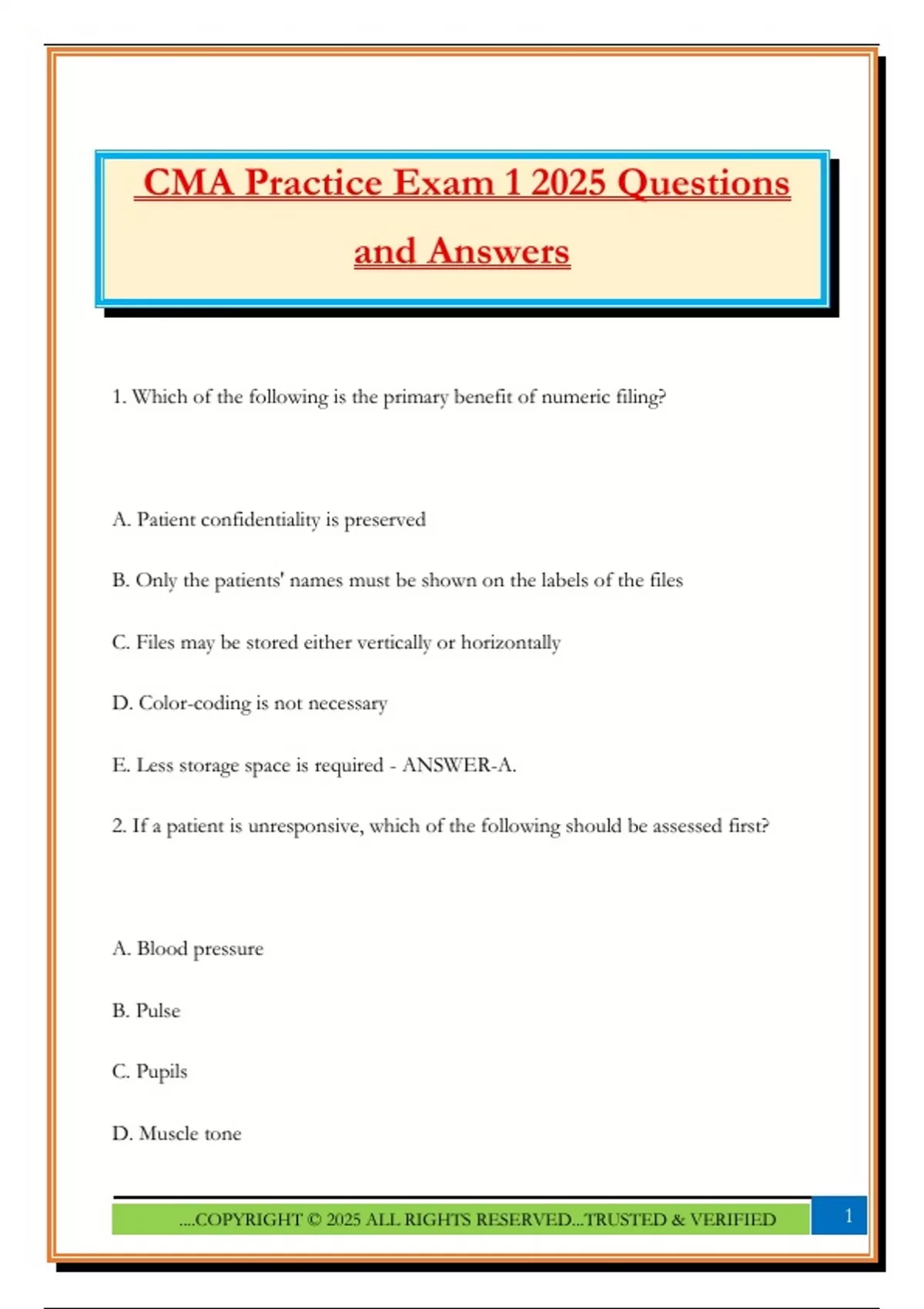 CMA Practice Exam 1 2025 Questions
