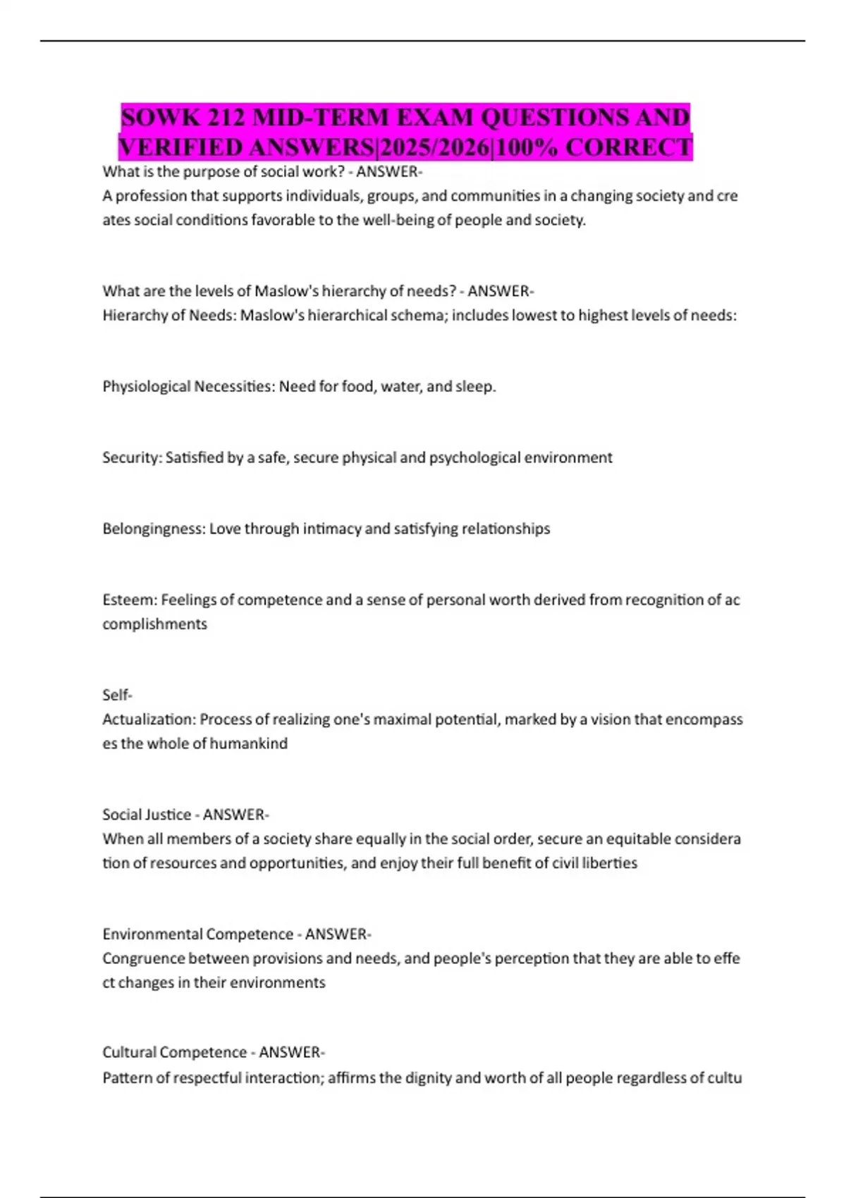 SOWK 212 MID-TERM EXAM QUESTIONS AND