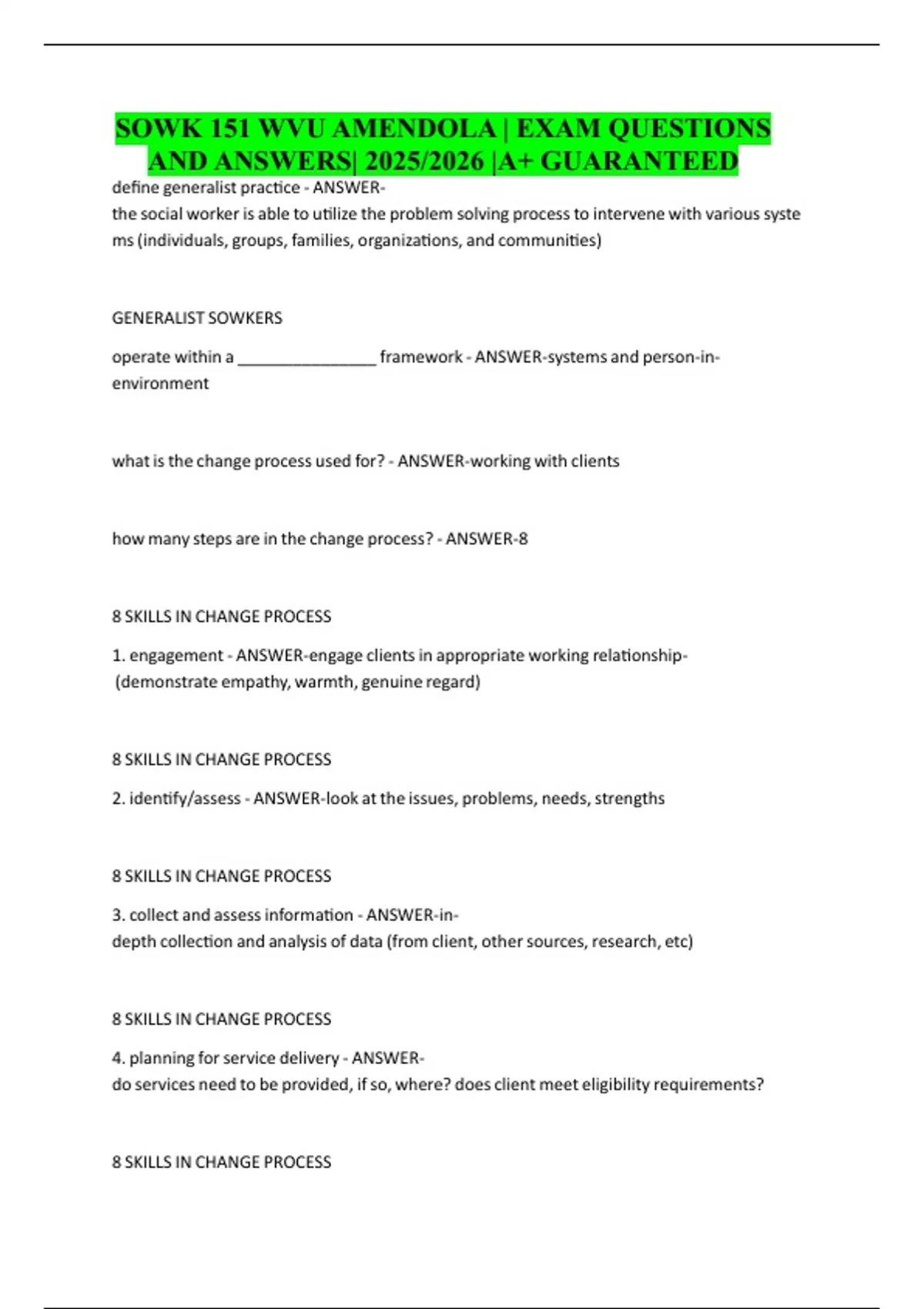 SOWK 151 WVU AMENDOLA | EXAM QUESTIONS