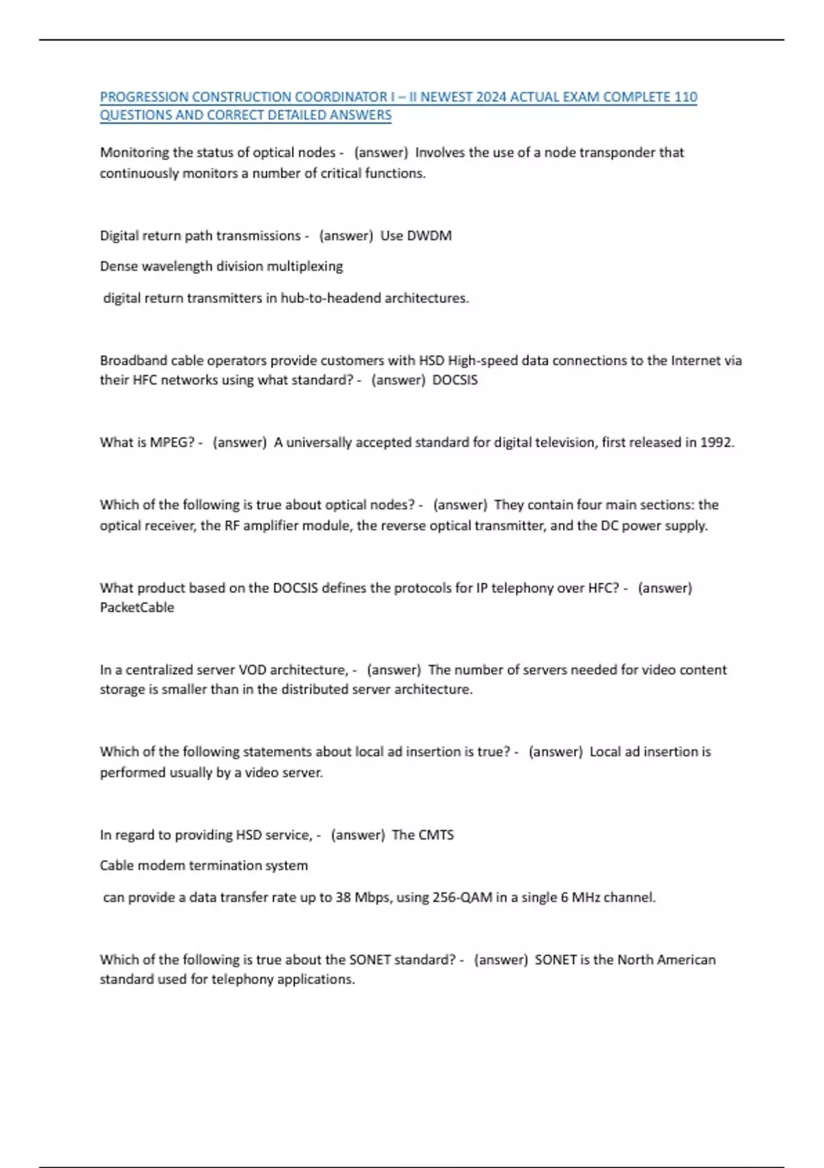 PROGRESSION CONSTRUCTION COORDINATOR I – II NEWEST 2024 ACTUAL EXAM COMPLETE 110