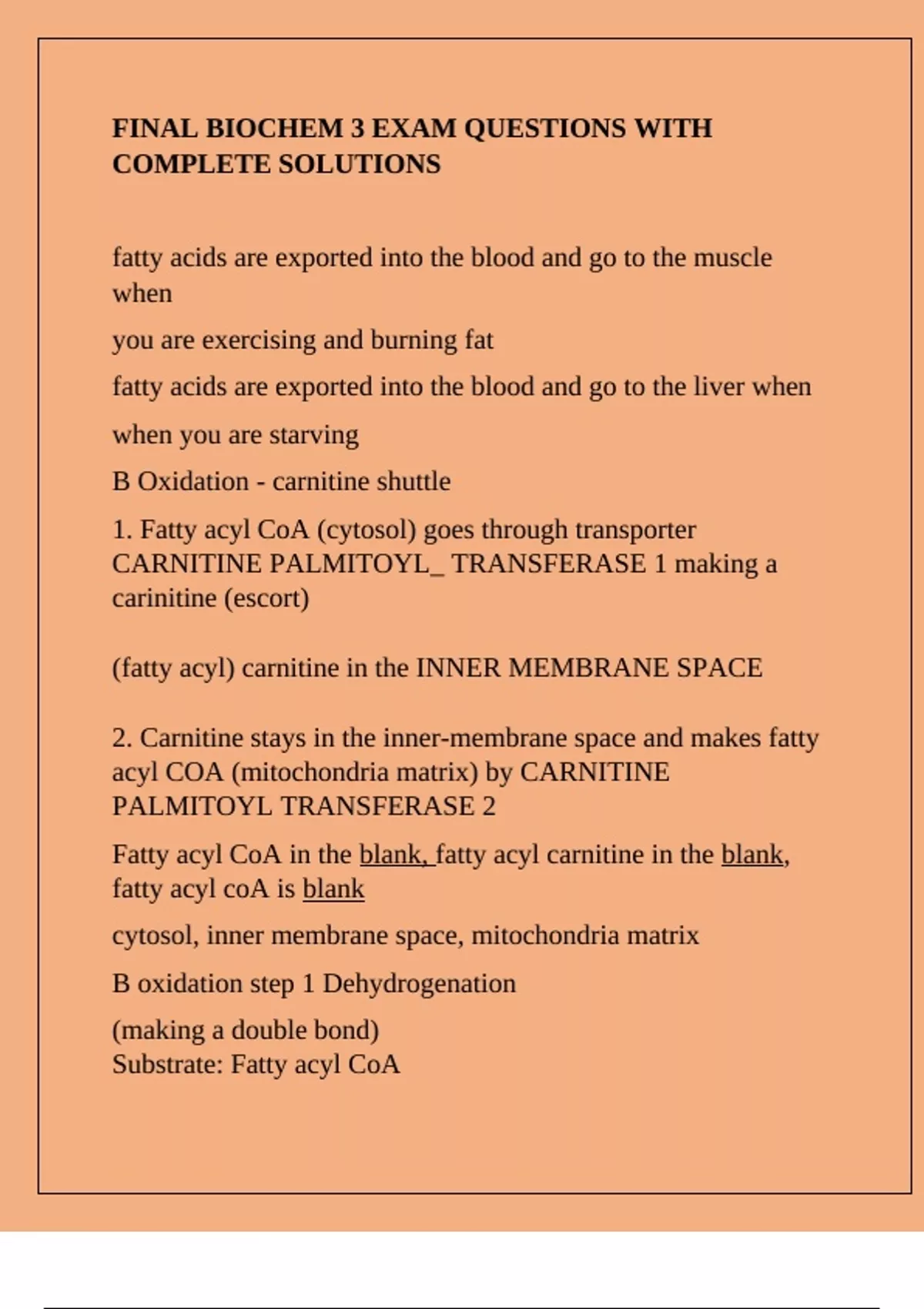 Fatty acyl CoA in the blank, fatty acyl carnitine in the blank,