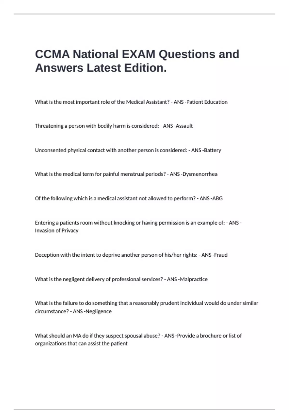 CCMA National EXAM Questions and