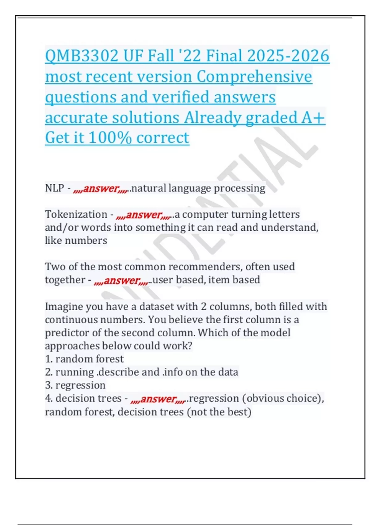 QMB3302 UF Fall '22 Final most recent version Comprehensive questions and verified answers accurate solutions Already graded A+ Get it 100% correct