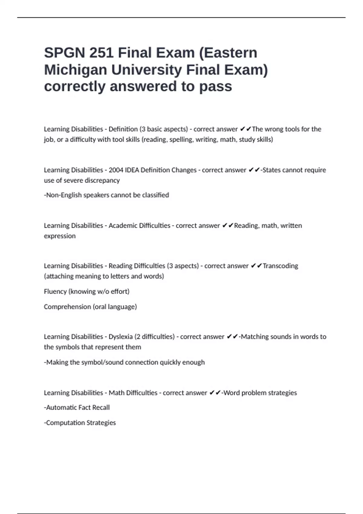 Learning Disabilities - Academic Difficulties - correct answer ✔✔Reading, math, written