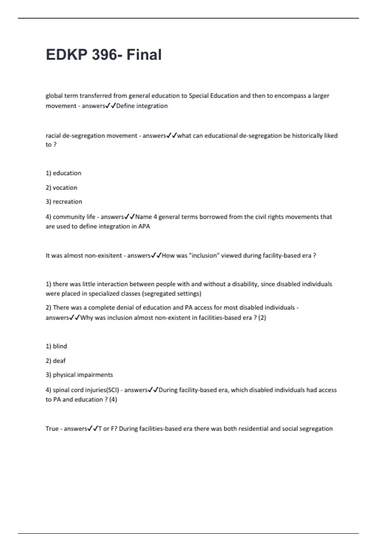 answers✔✔Why was inclusion almost non-existent in facilities-based era ? (2)
