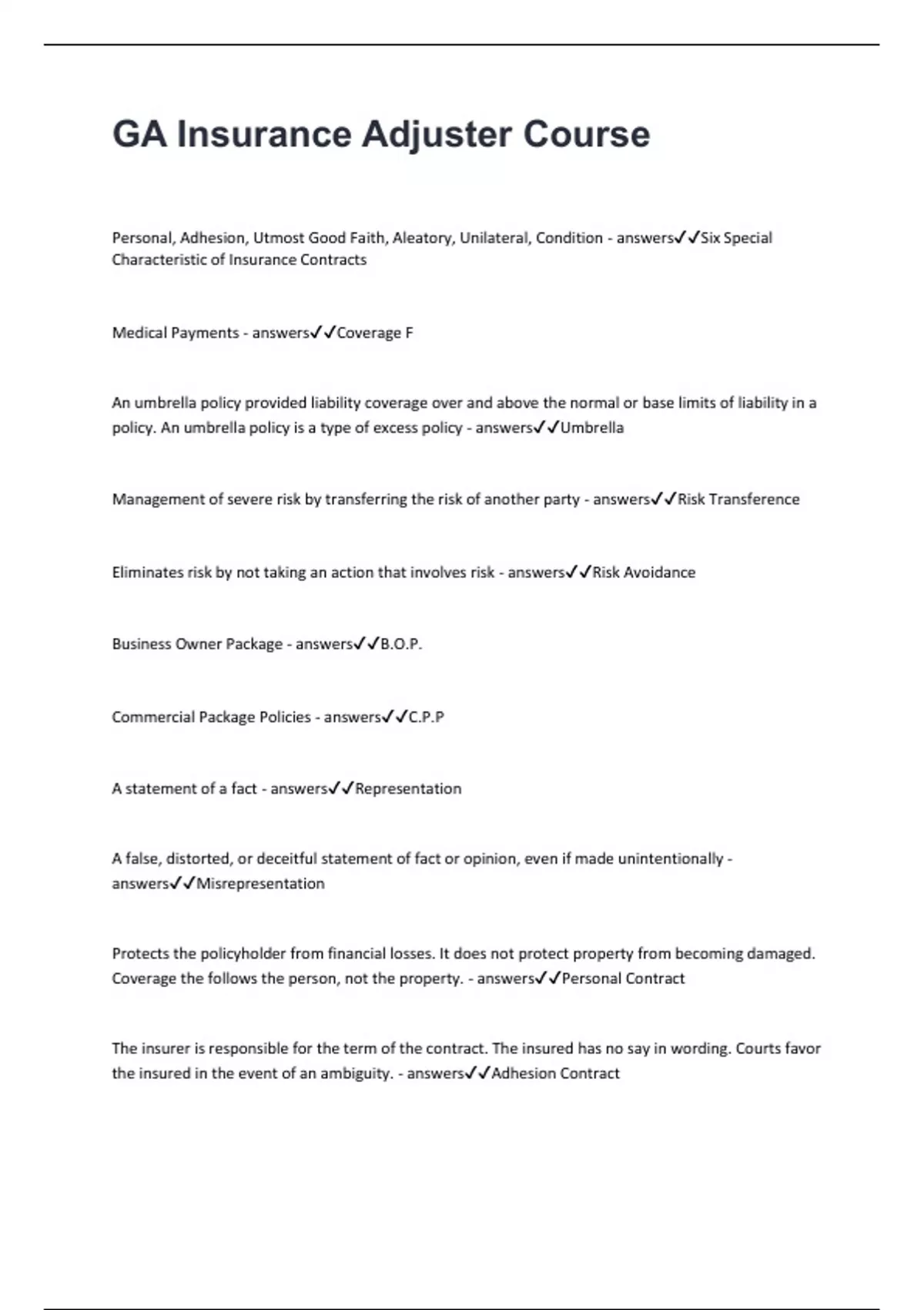 Personal, Adhesion, Utmost Good Faith, Aleatory, Unilateral, Condition - answers✔✔Six Special