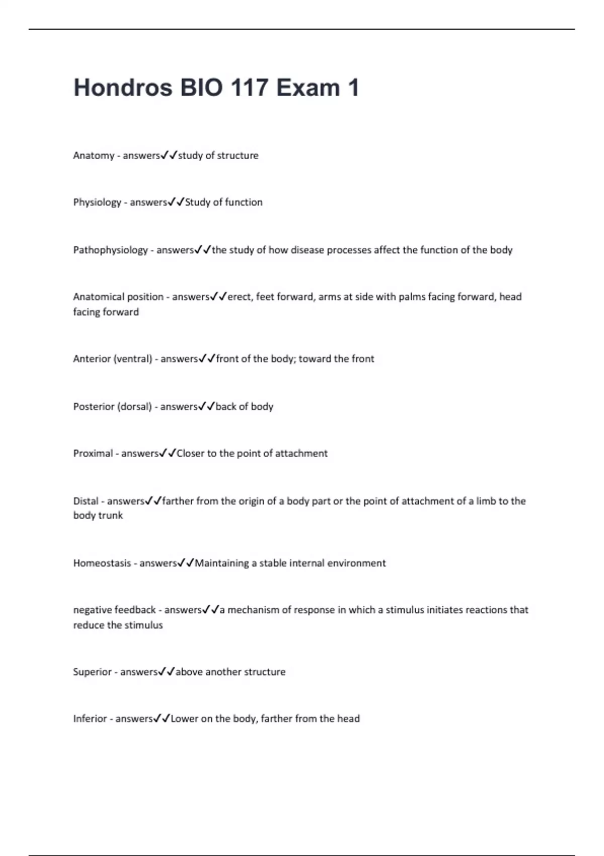 Anatomy - answers✔✔study of structure