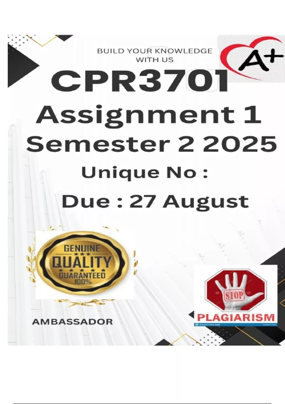 CPR3701 Assignment 1 (COMPLETE ANSWERS) Semester 2 2025 - DUE 27 August 2025