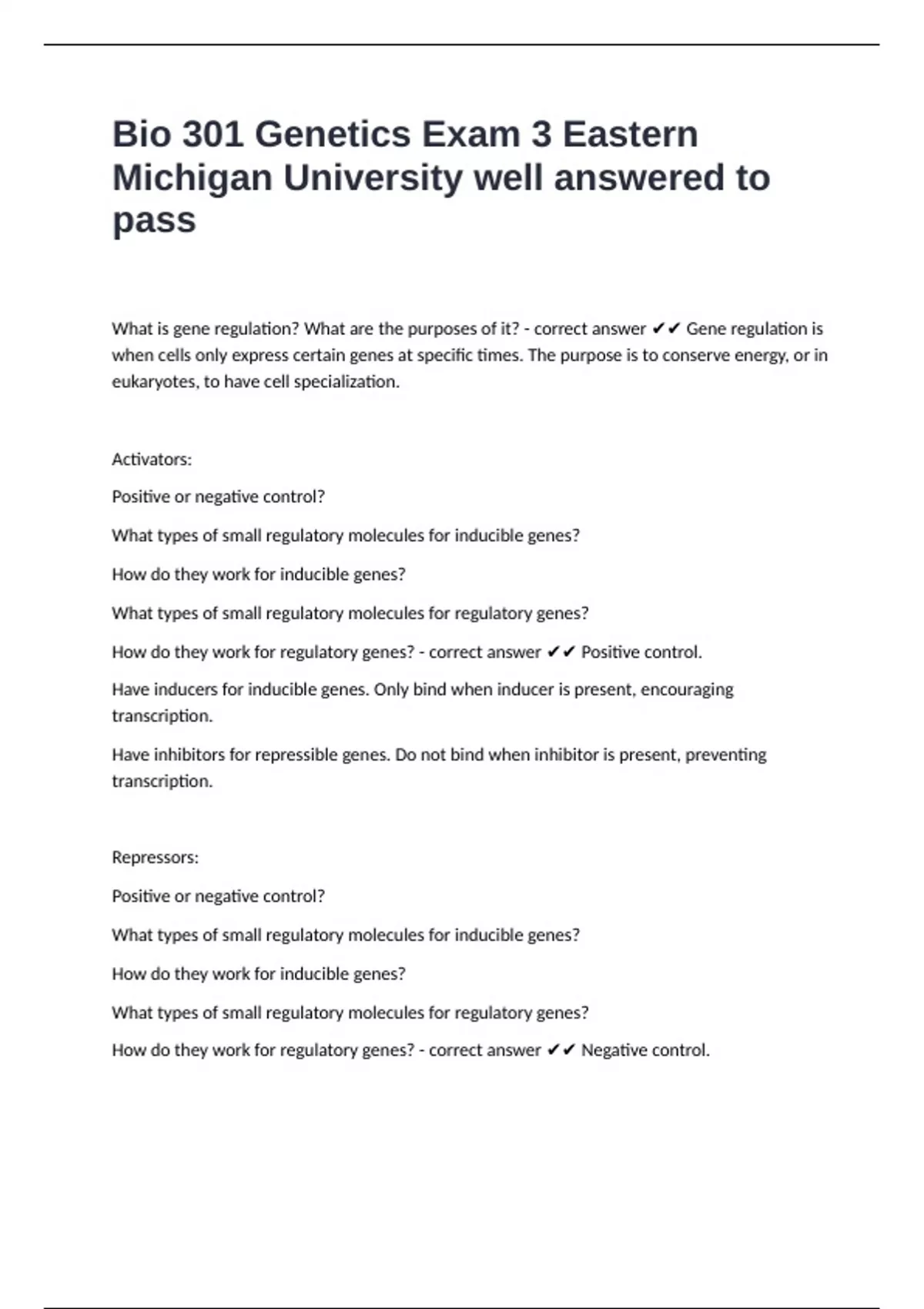 What is gene regulation? What are the purposes of it? - correct answer ✔✔ Gene regulation is