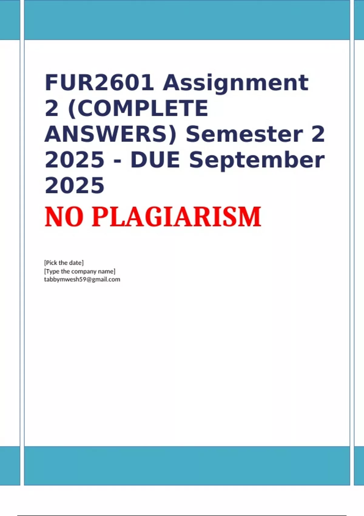 FUR2601 Assignment 2 (COMPLETE ANSWERS) Semester 2 2025 - DUE