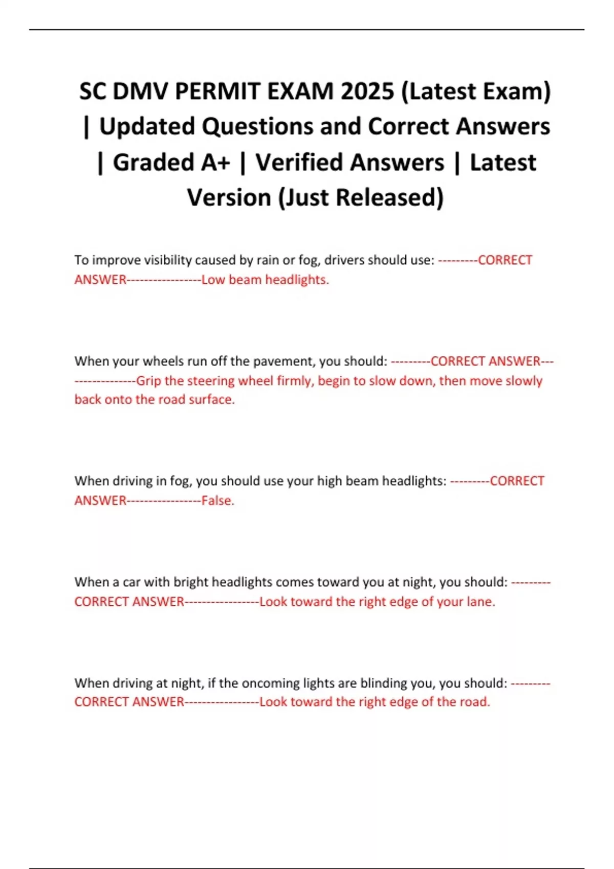 | Updated Questions and Correct Answers