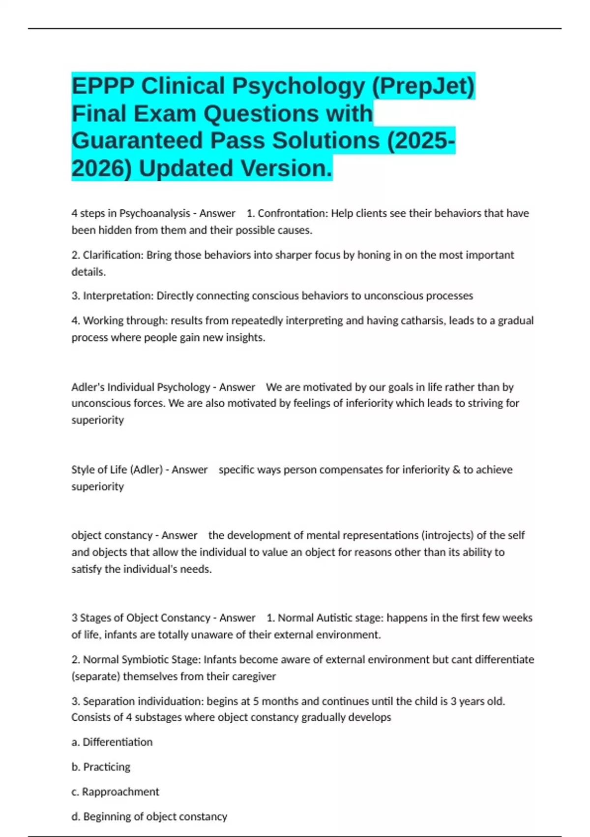 4 steps in Psychoanalysis - Answer 1. Confrontation: Help clients see their behaviors that have