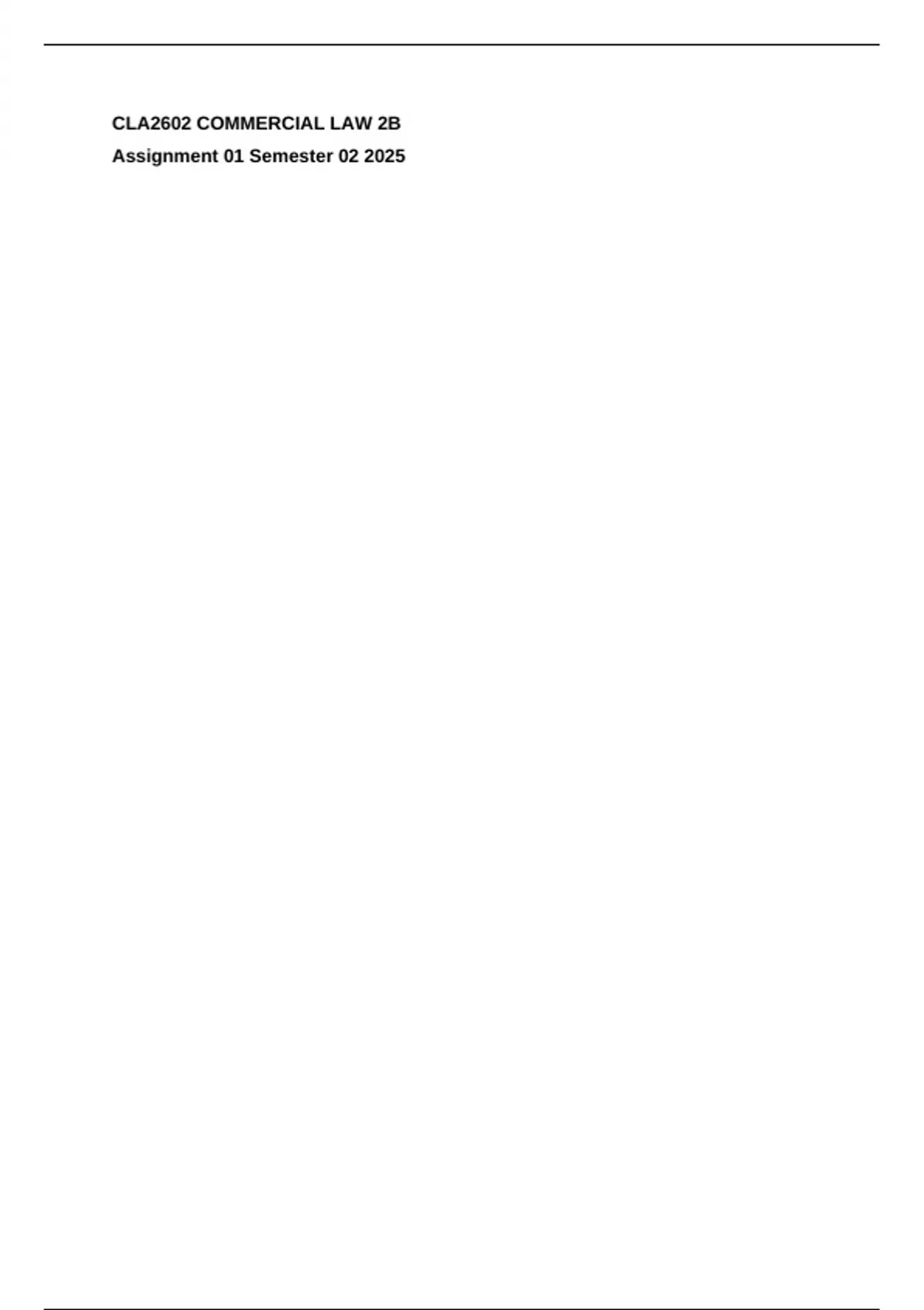 CLA2602 COMMERCIAL LAW 2B Assignment 02 Semester 02 2025