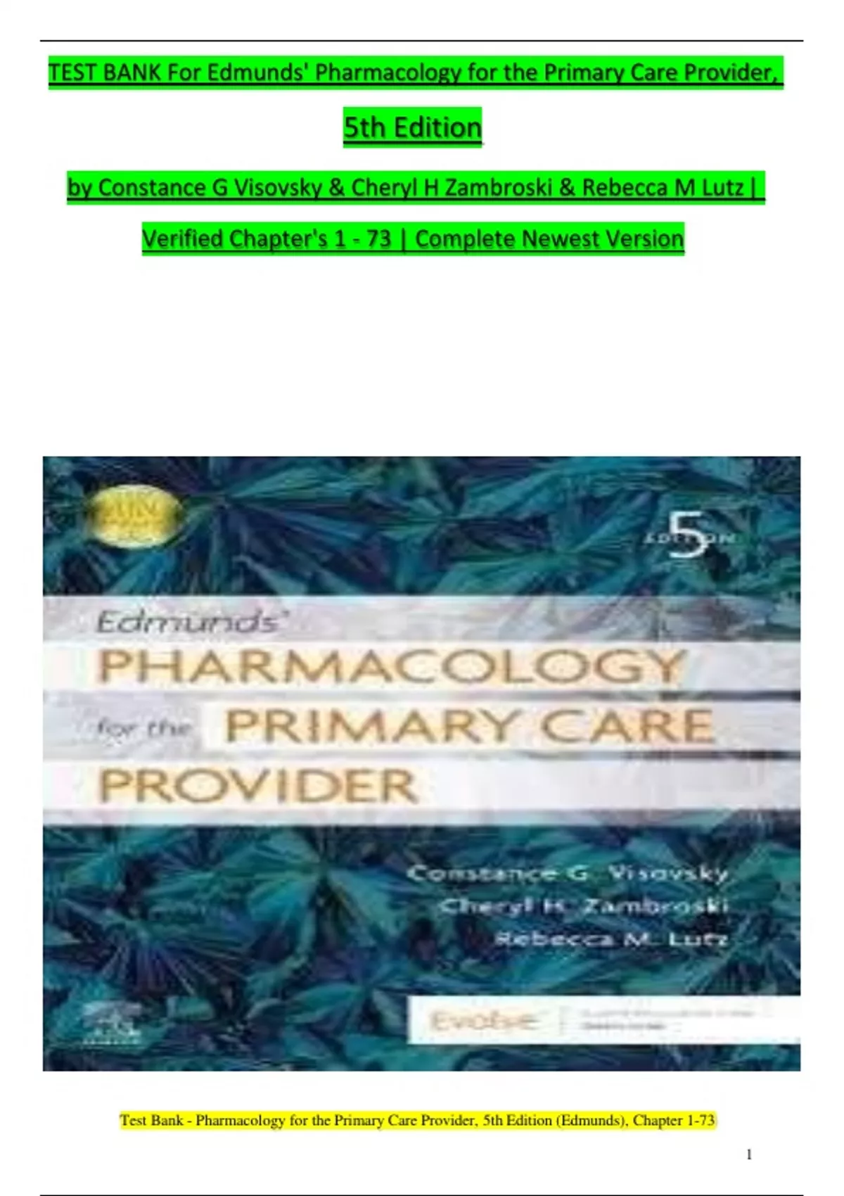 Test Bank - Pharmacology for the Primary Care Provider, 5th Edition (Edmunds), Chapter 1-73