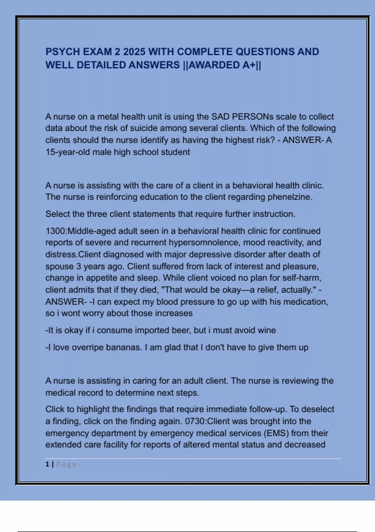 PSYCH EXAM 2 2025 WITH COMPLETE QUESTIONS AND