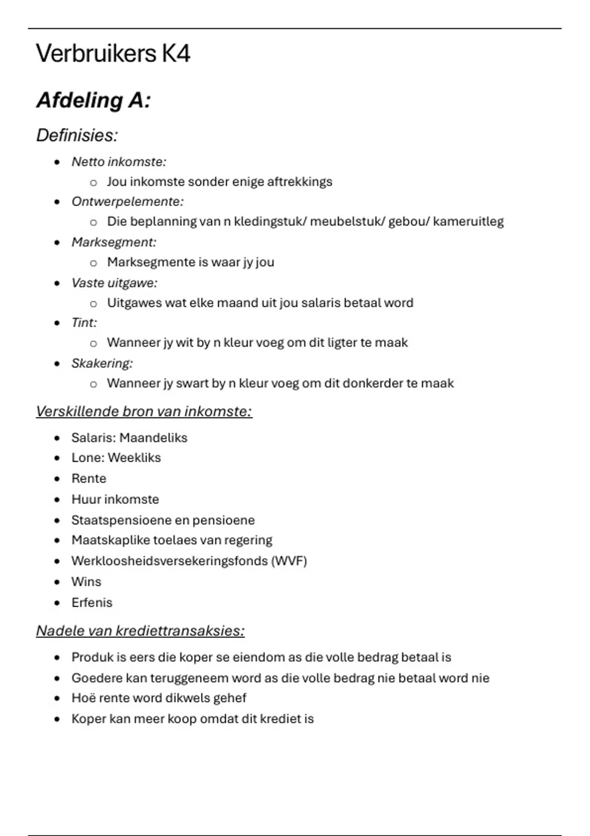 o Uitgawes wat elke maand uit jou salaris betaal word