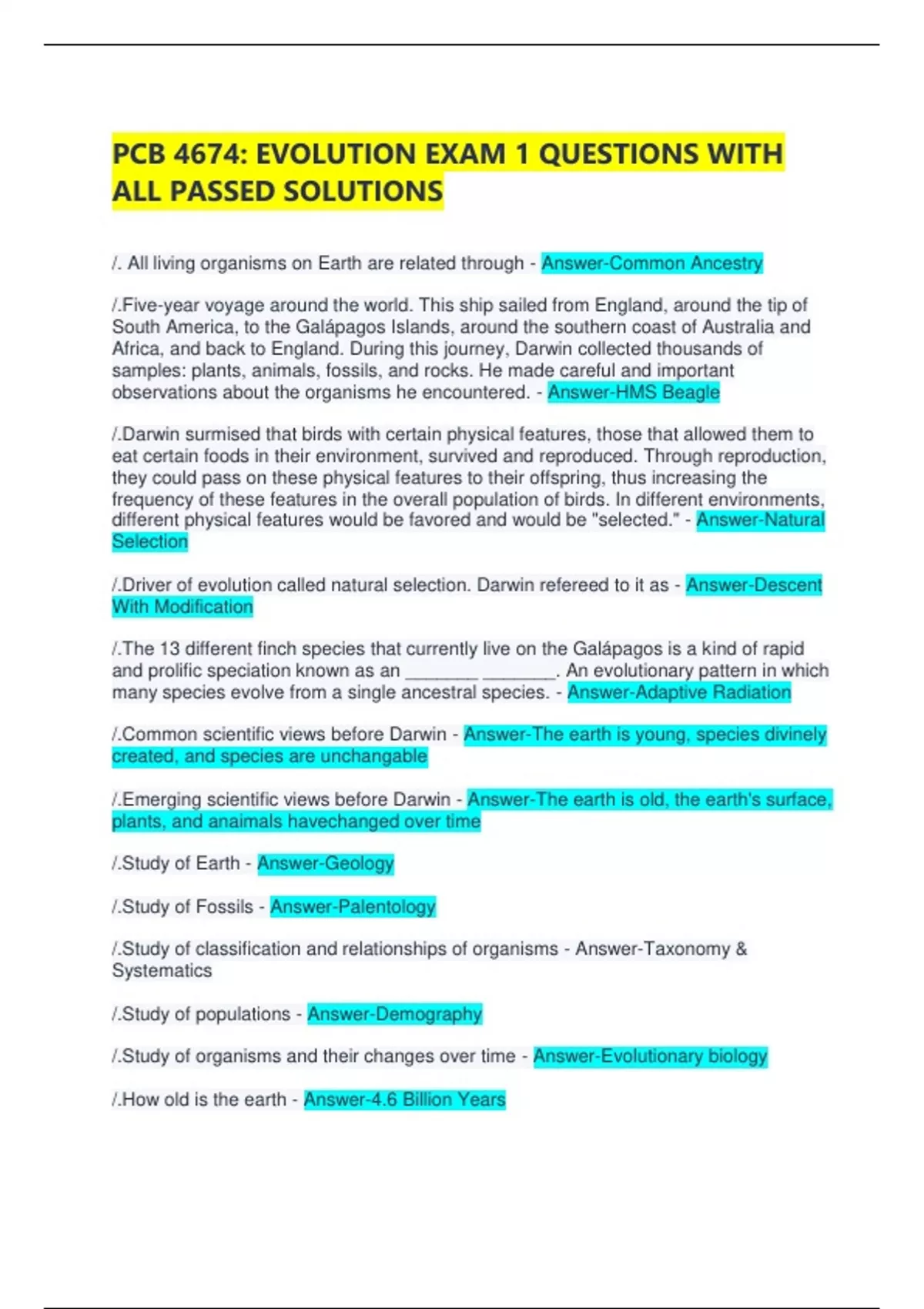 /. All living organisms on Earth are related through - Answer-Common Ancestry