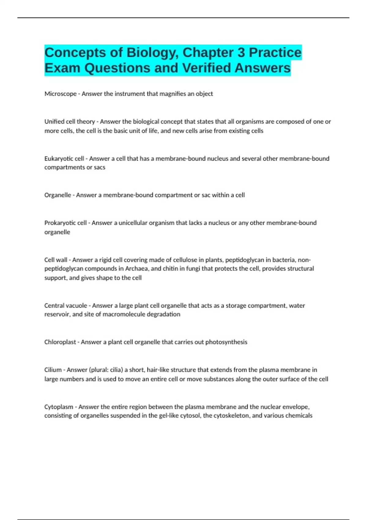 Concepts of Biology, Chapter 3 Practice Exam Questions and Verified Answers