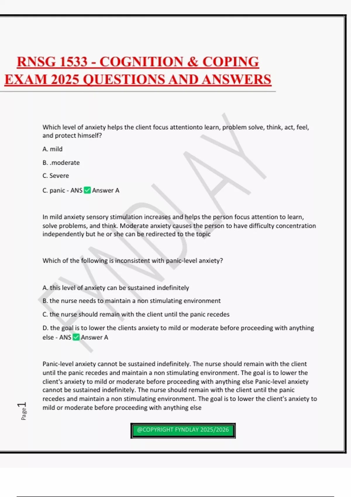 Panic-level anxiety cannot be sustained indefinitely. The nurse should remain with the client