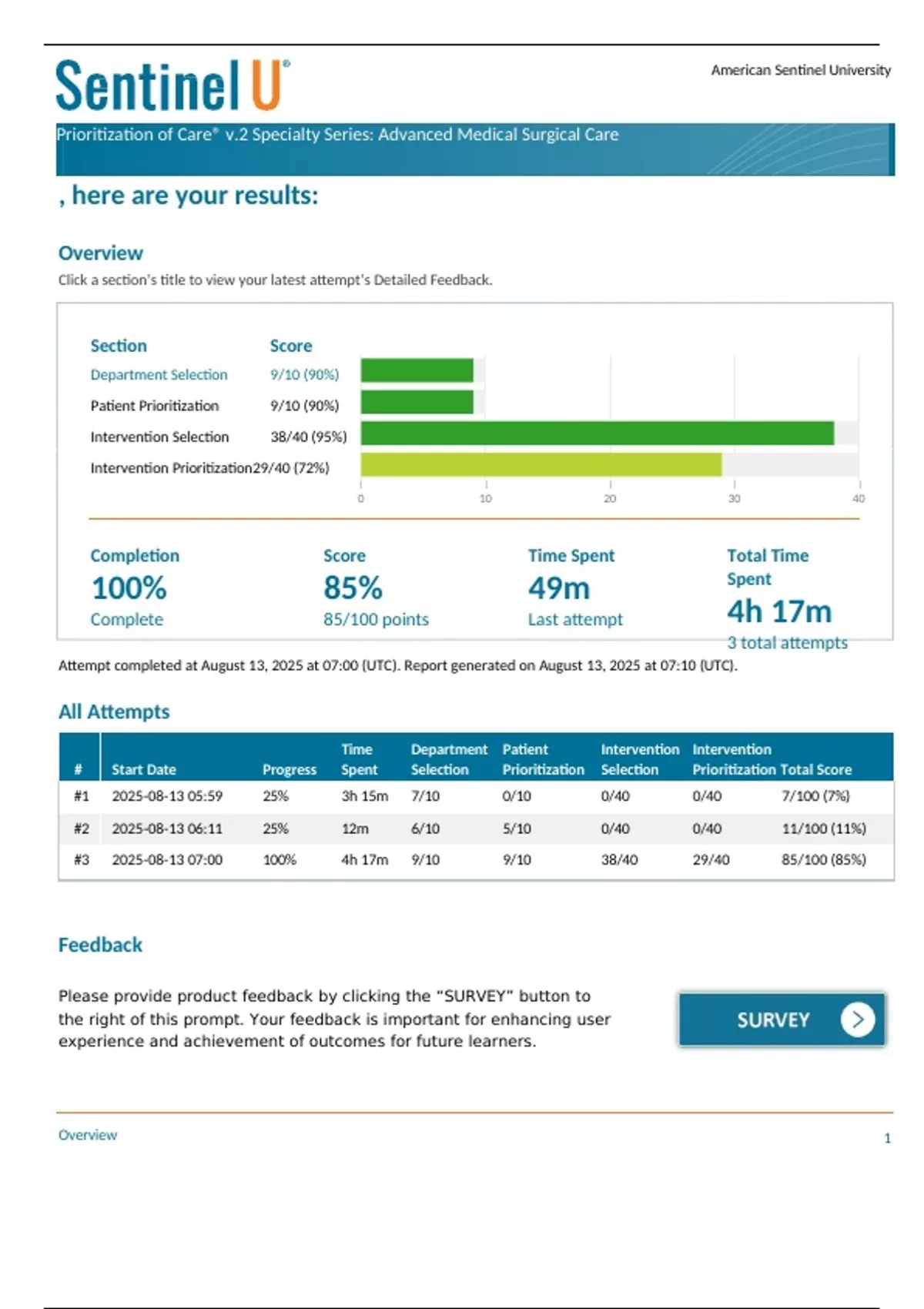 #3 2025-08-13 07:00 100% 4h 17m 9/10 9/10 38/40 29/40 85/100 (85%)