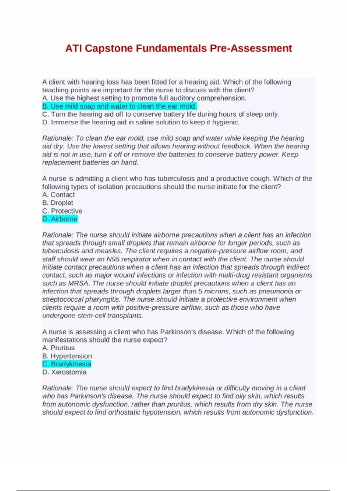 - ATI Capstone Fundamentals Pre-Assessment