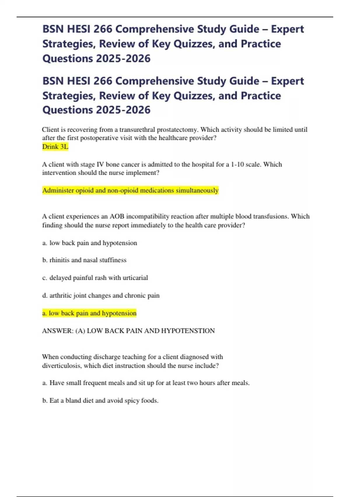 BSN HESI 266 Comprehensive Study Guide – Expert