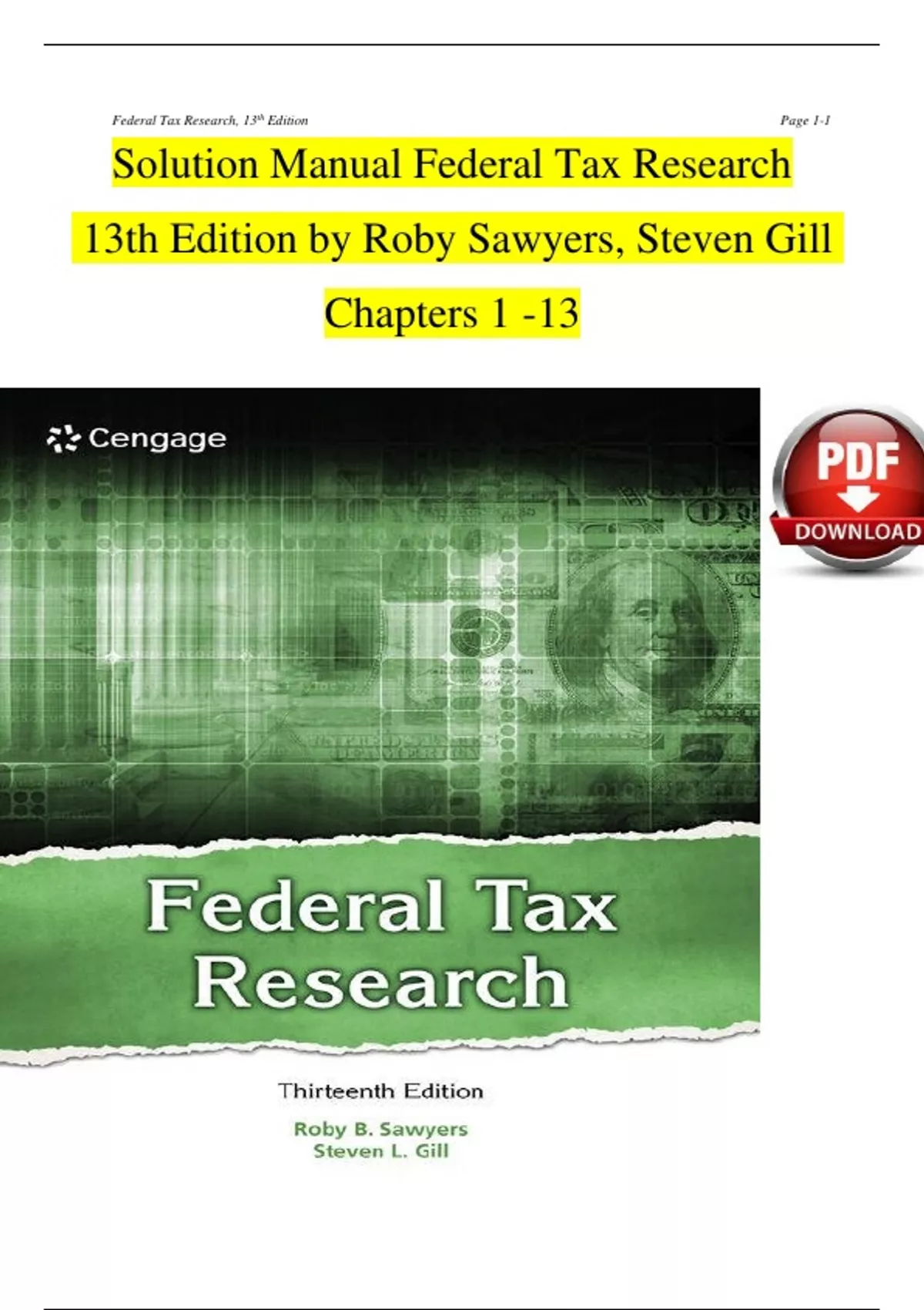 Solution Manual for Federal Tax Research (13th Edition) by Roby Sawyers & Steven Gill — Chapters 1–13, Complete Newest Version