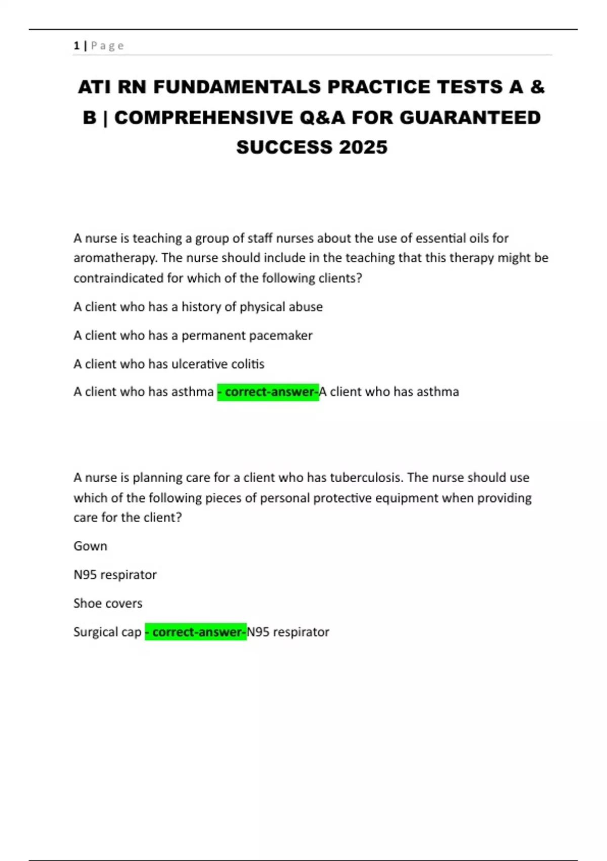 Surgical cap - correct-answer-N95 respirator