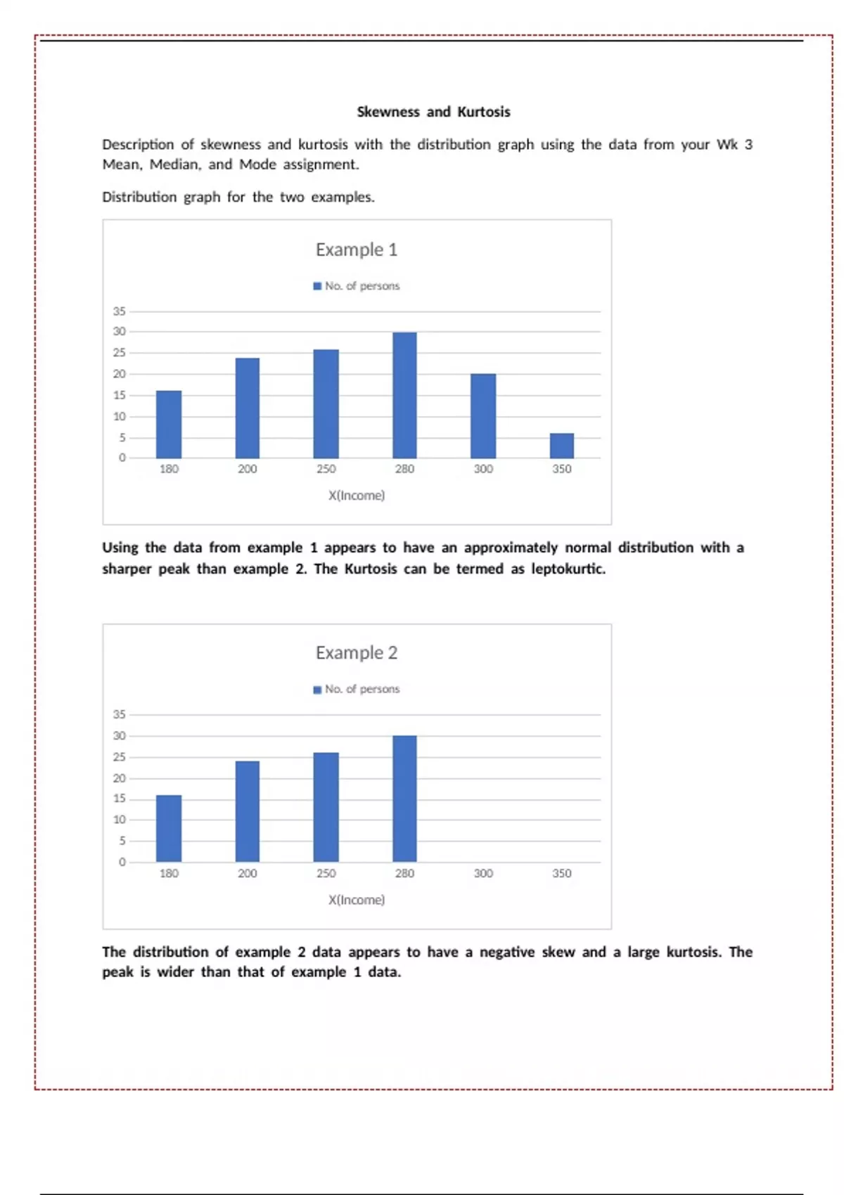 Description of skewness and kurtosis with the distribution graph using the data from your Wk 3