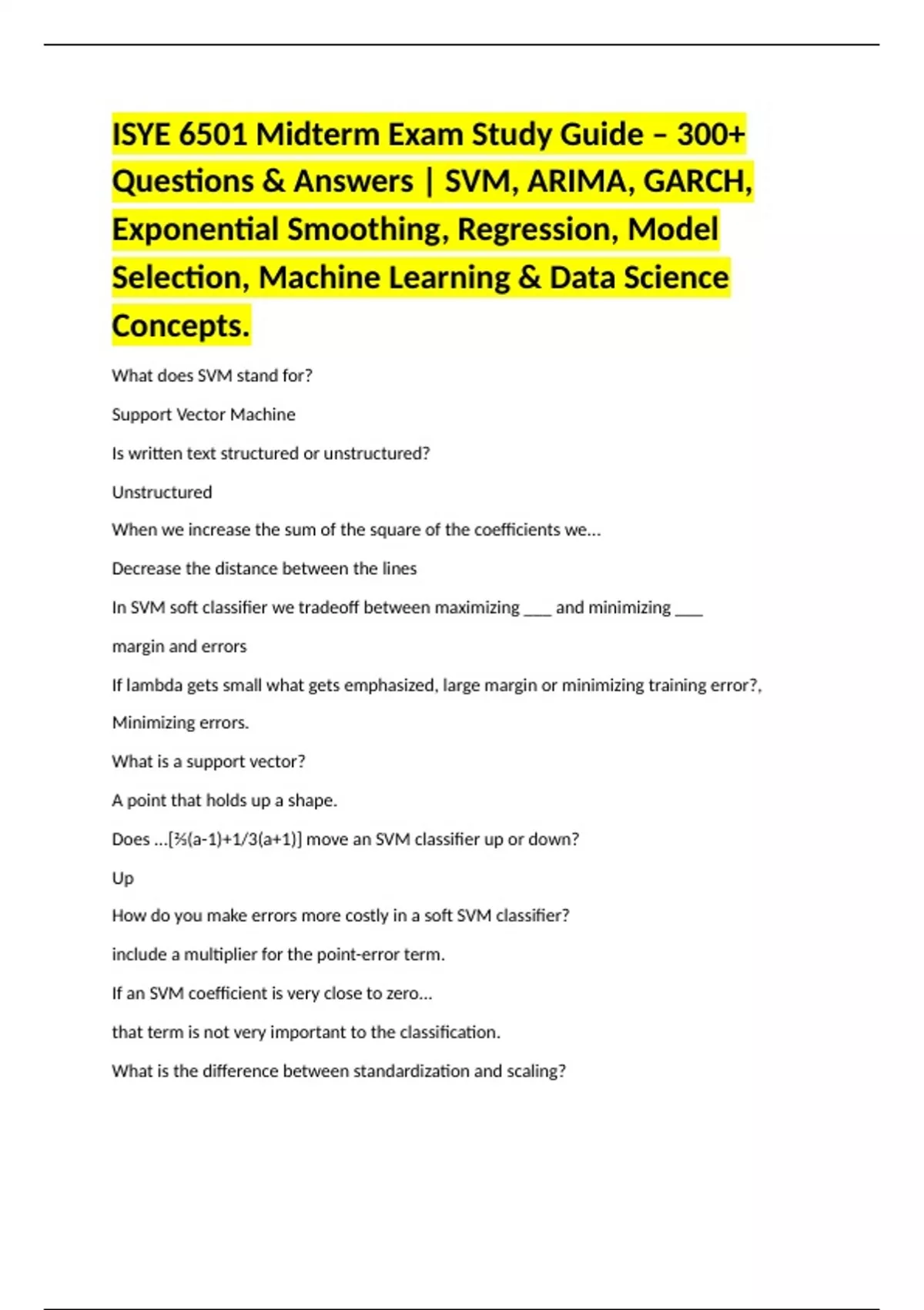 Questions & Answers | SVM, ARIMA, GARCH,