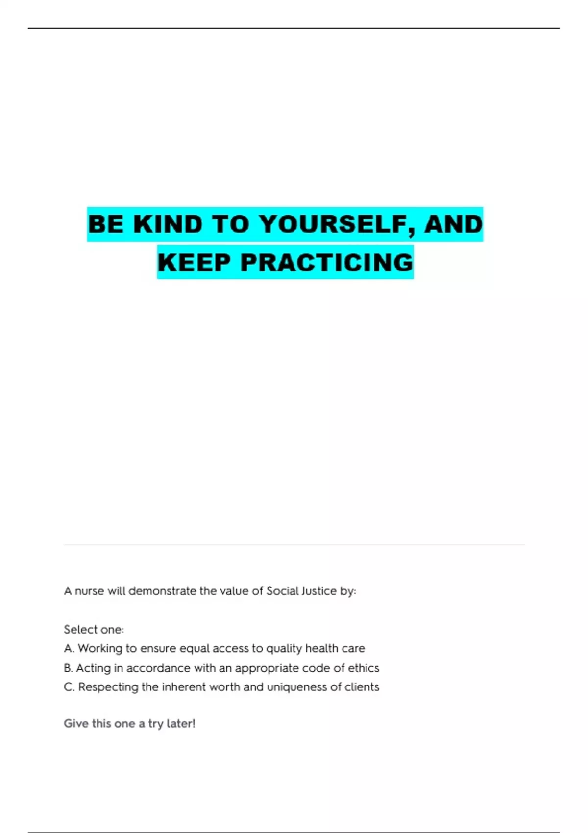 A nurse will demonstrate the value of Social Justice by: