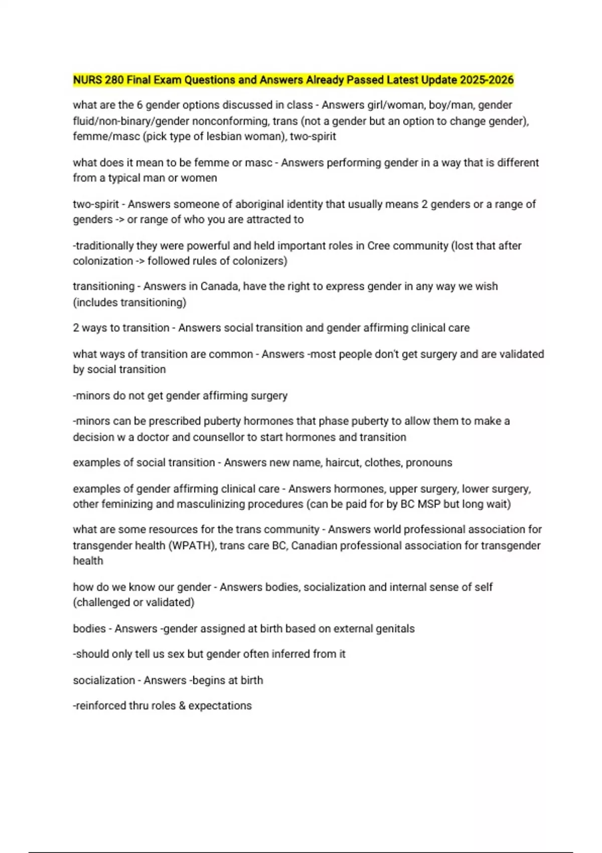 what are the 6 gender options discussed in class - Answers girl/woman, boy/man, gender