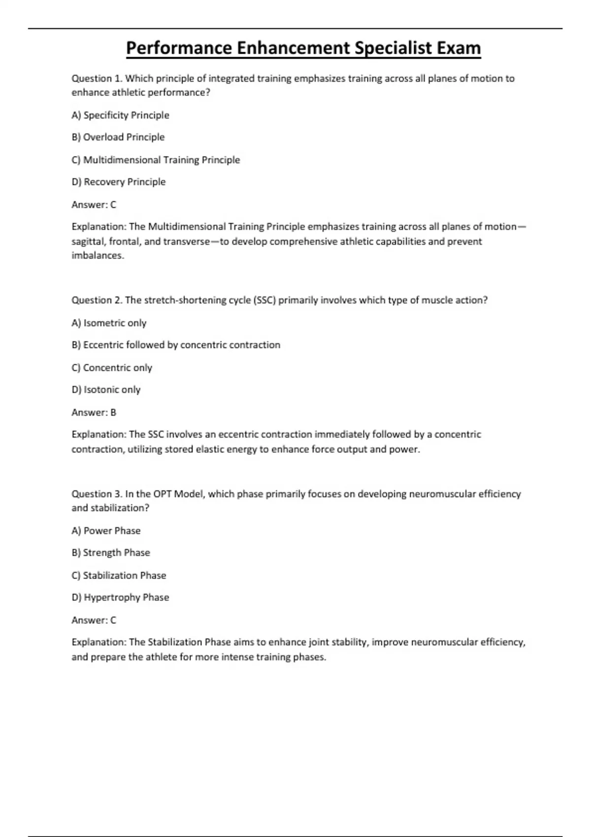 , Performance Enhancement Specialist Exam