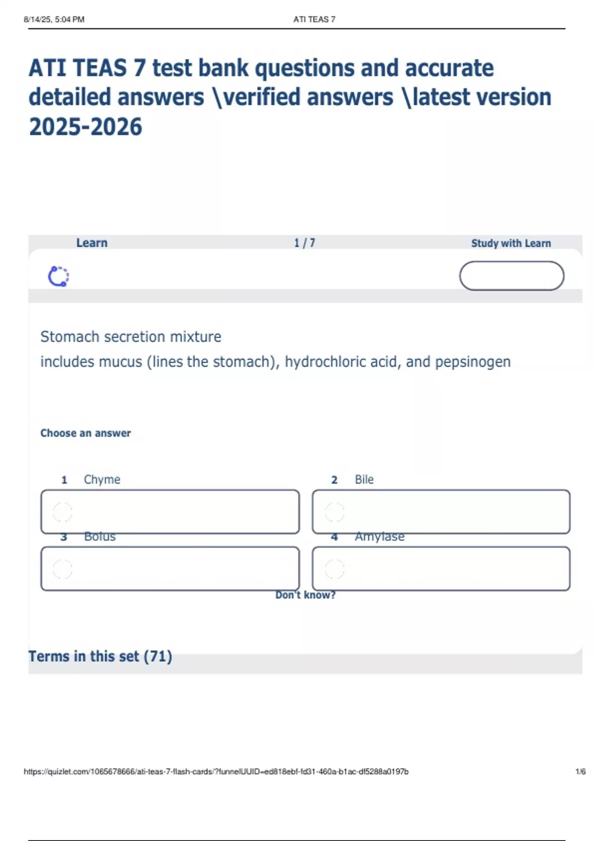, 8/14/25, 5:04 PM ATI TEAS 7