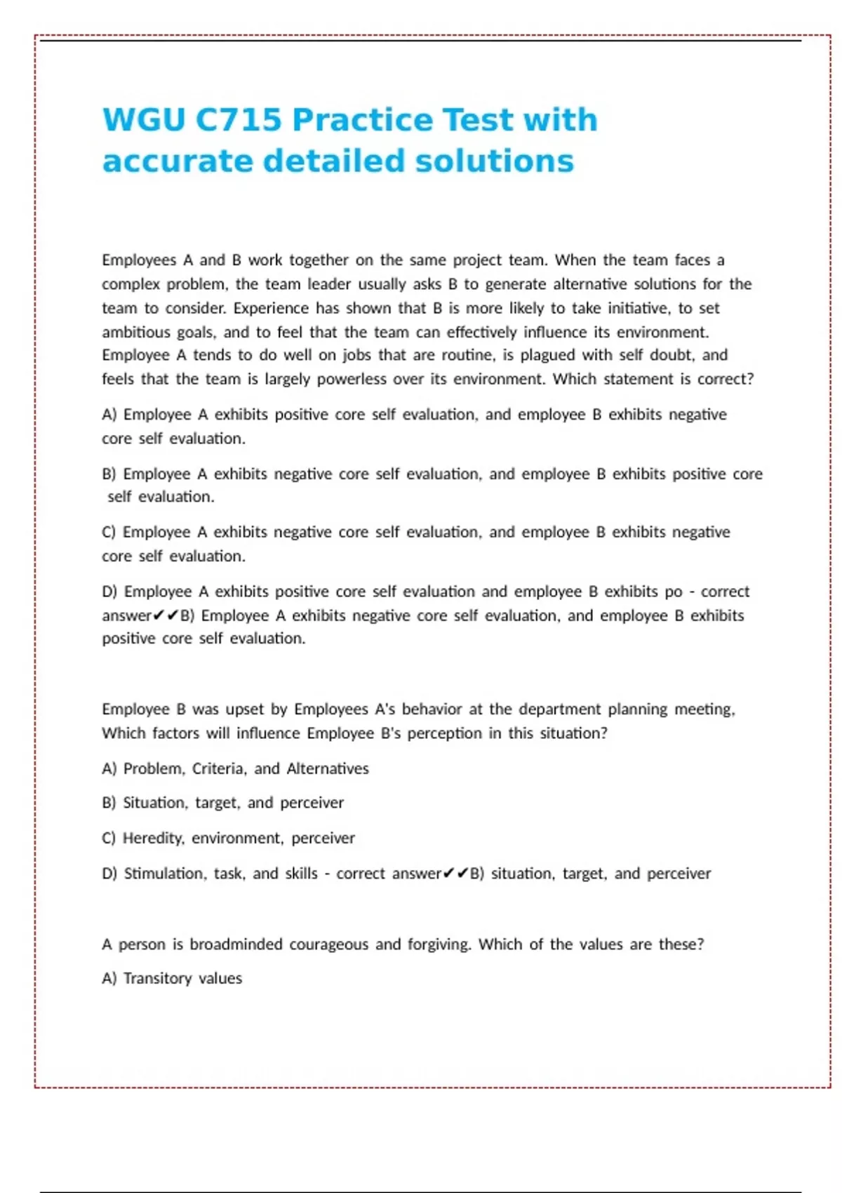 D) Determinate values - correct answer✔✔C) Instrumental Values
