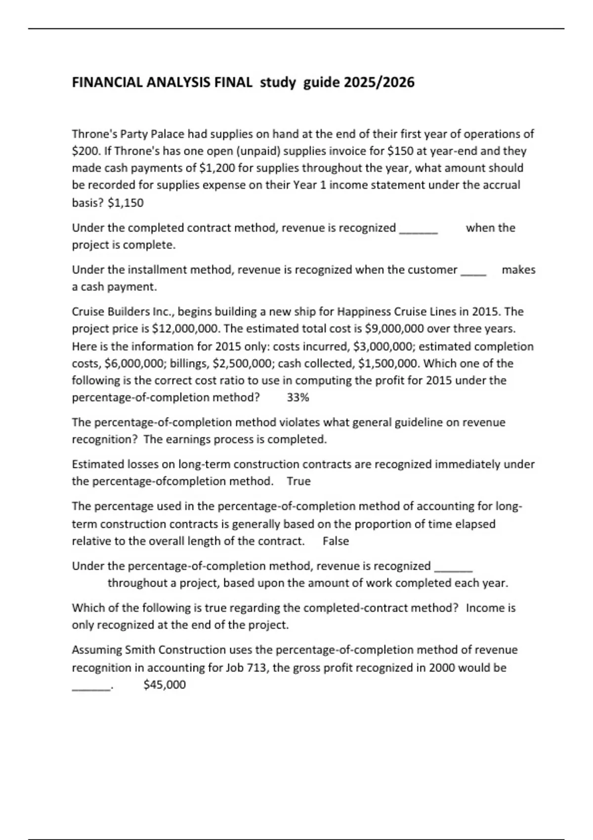 FINANCIAL ANALYSIS FINAL study guide 2025/2026