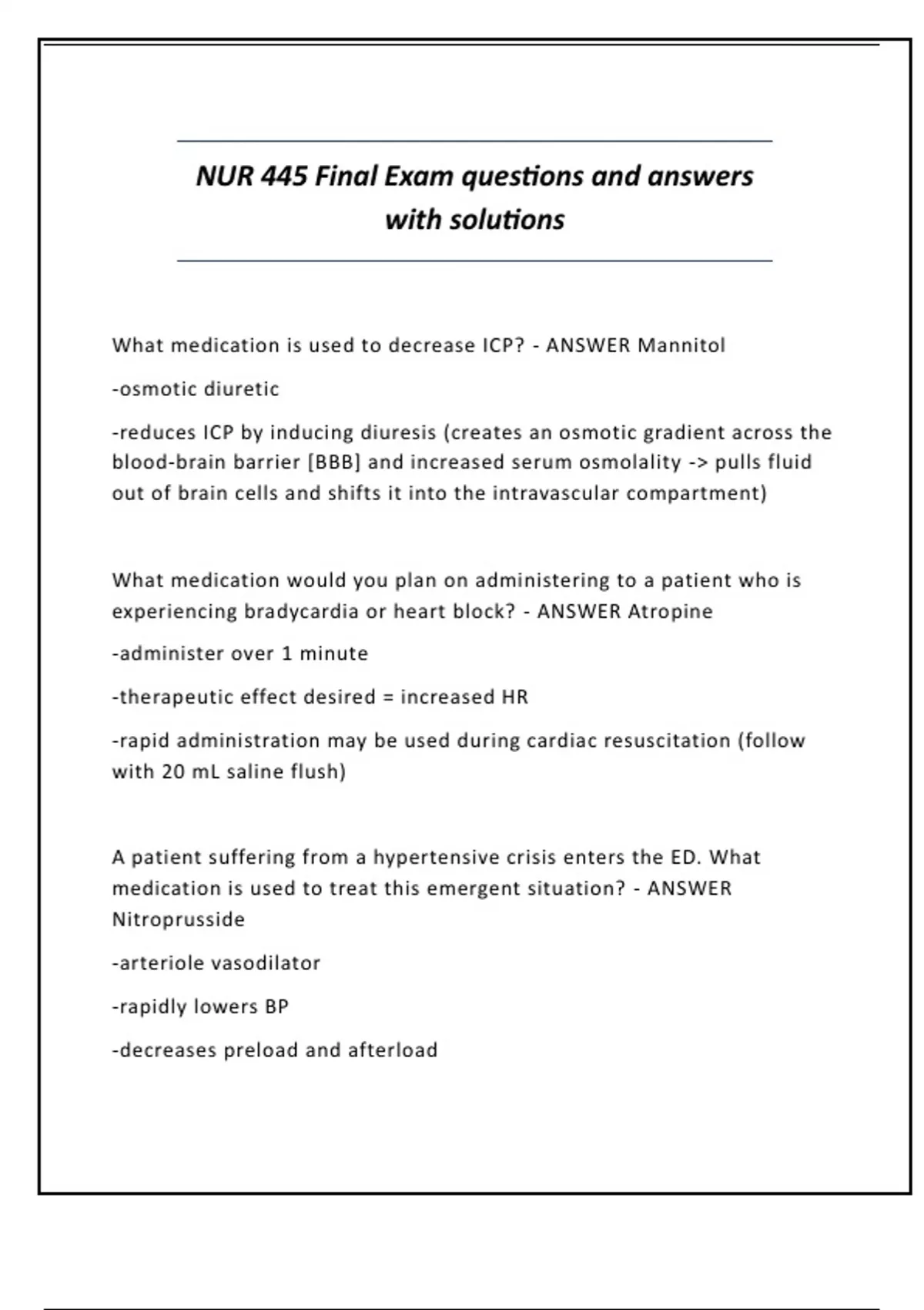 What medication is used to decrease ICP? - ANSWER Mannitol