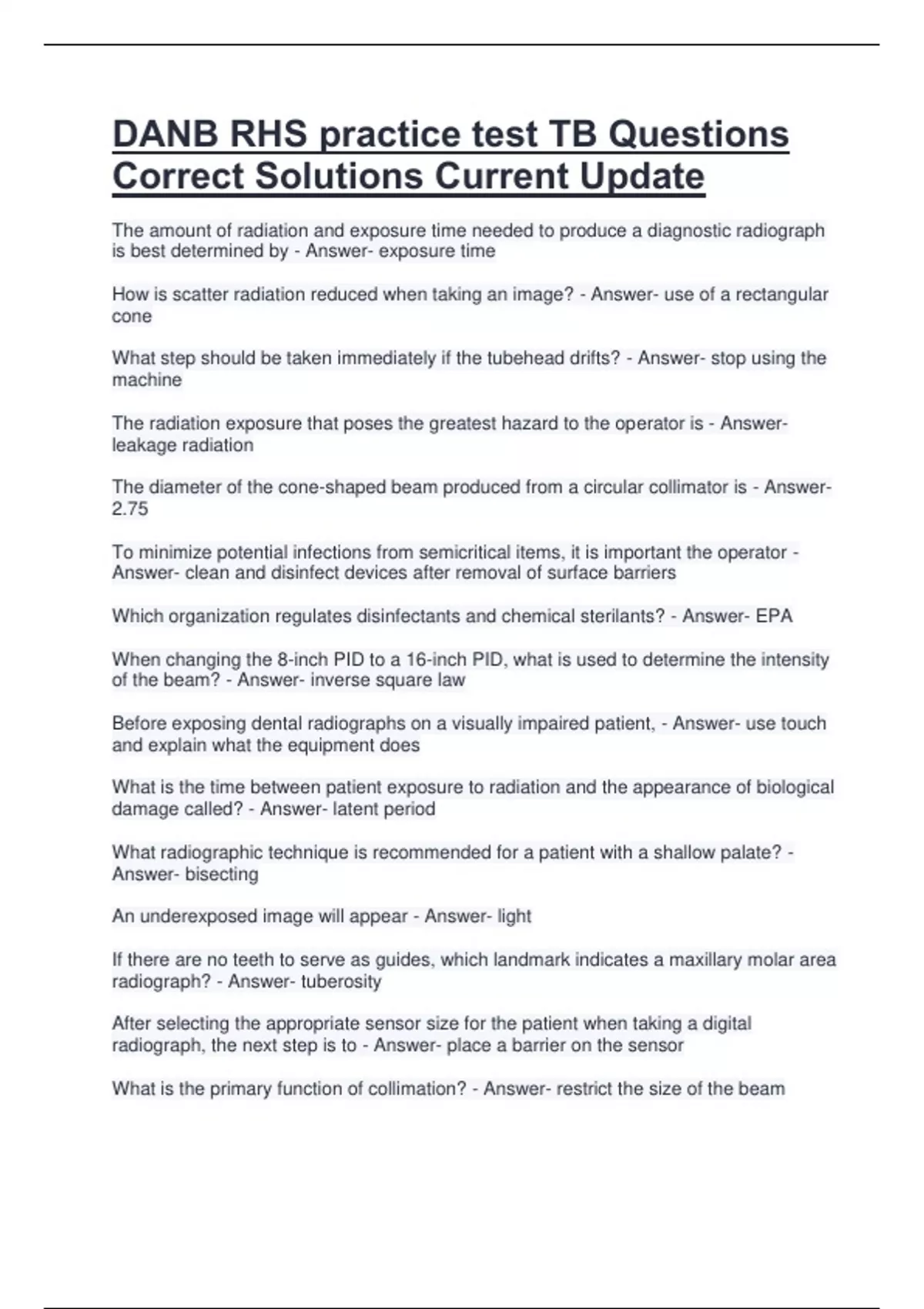 After a radiographic procedure, the PID should be - Answer- disinfected