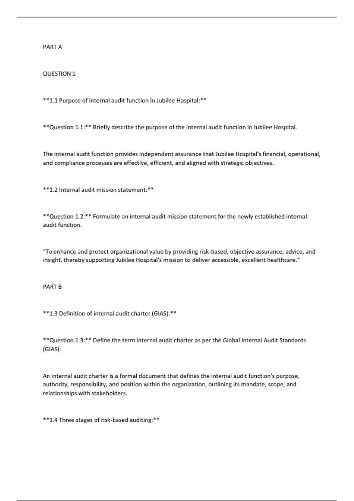 **Question 1.1:** Briefly describe the purpose of the internal audit function in Jubilee Hospital.