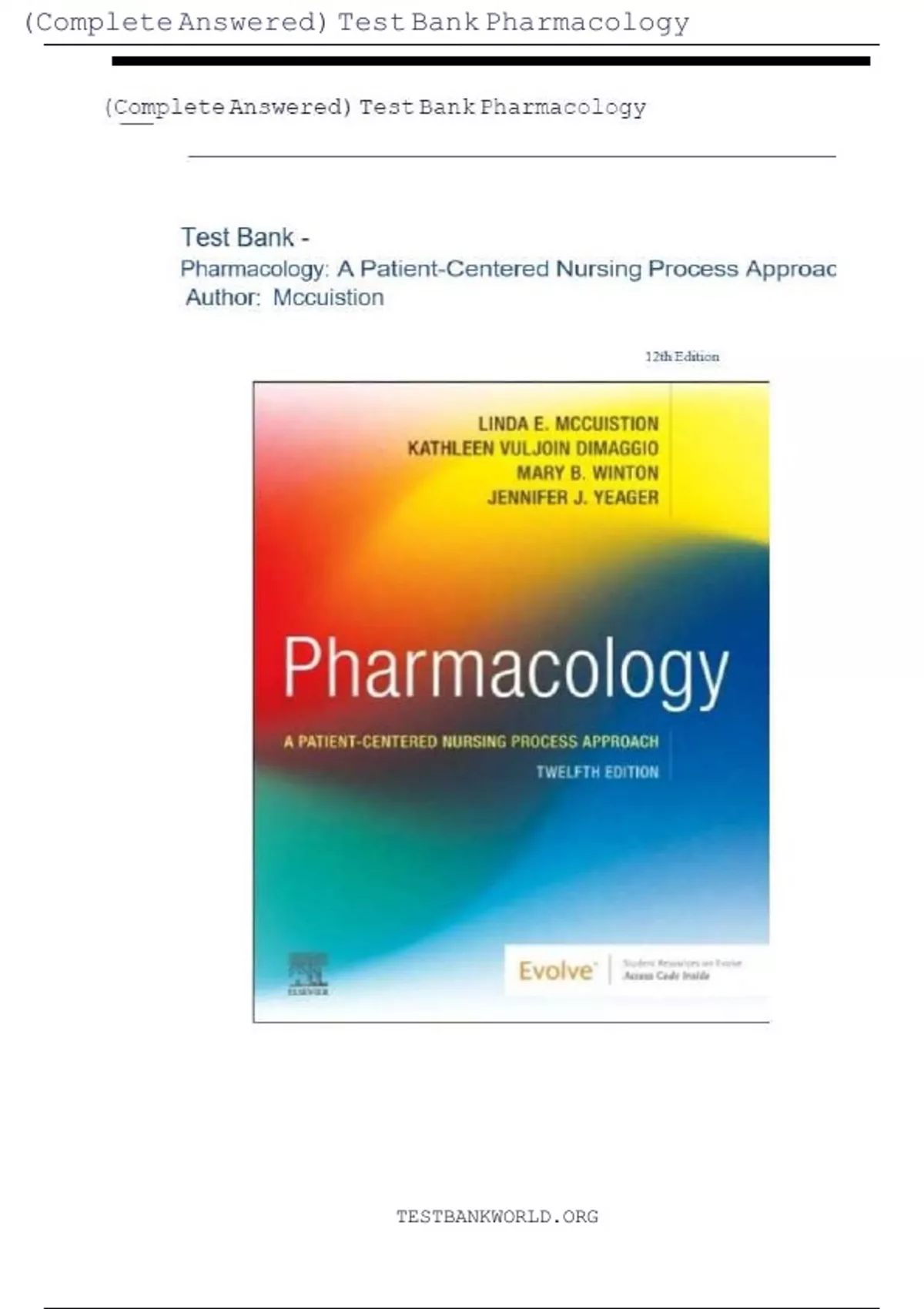 Test Bank - Pharmacology : A Patient-Centered Nursing Process Approach 12th Edition ( Linda E. McCuistion, 2025) All Chapters | Newest Edition