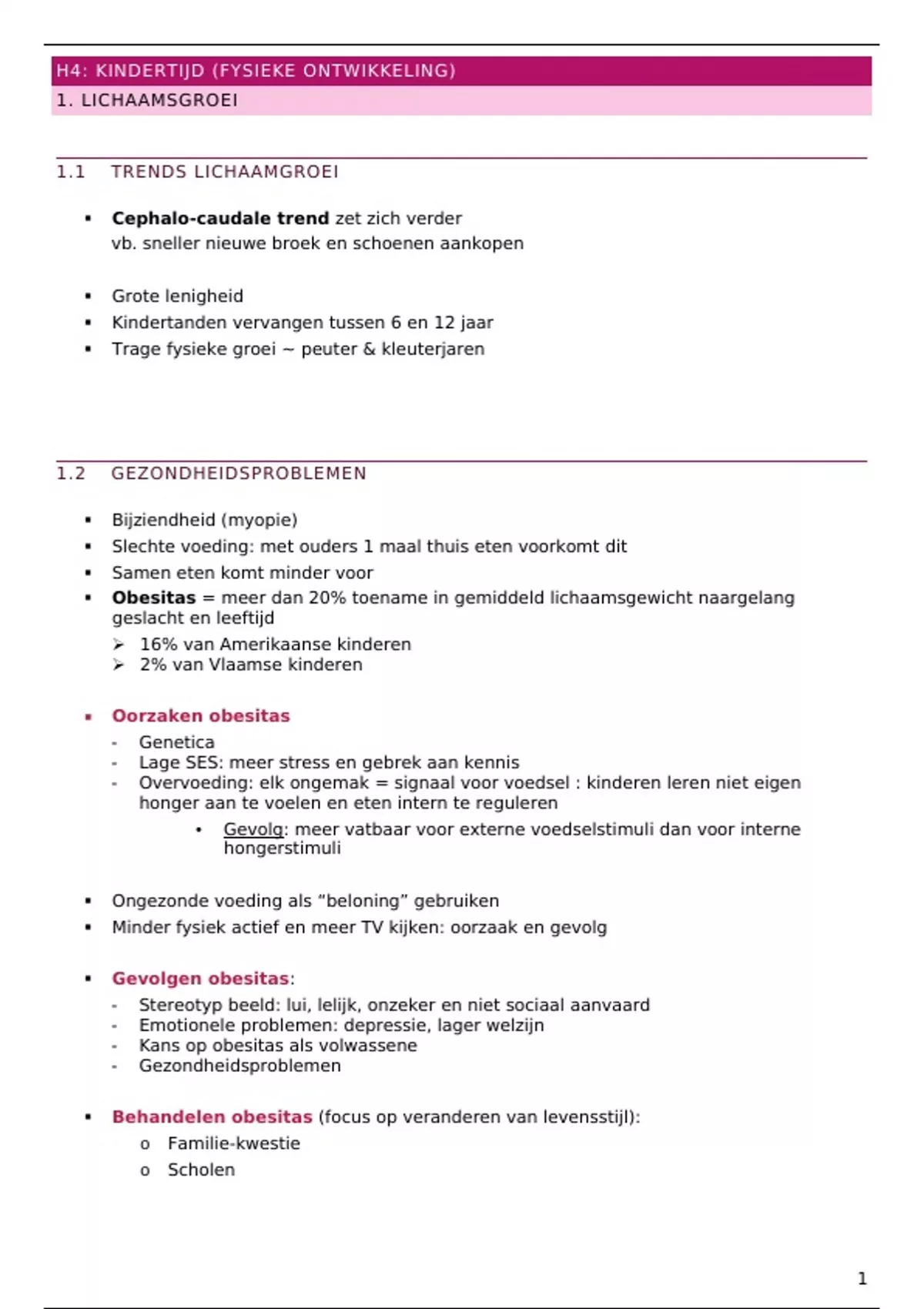 H4: KINDERTIJD (FYSIEKE ONTWIKKELING)