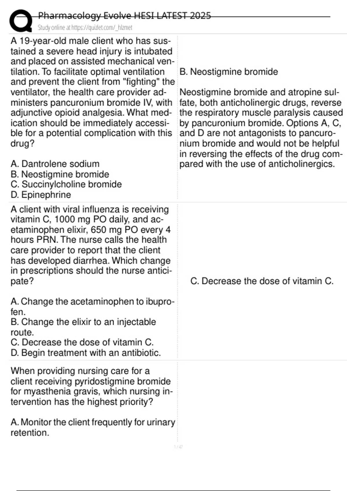 ication should be immediately accessi- by pancuronium bromide. Options A, C,