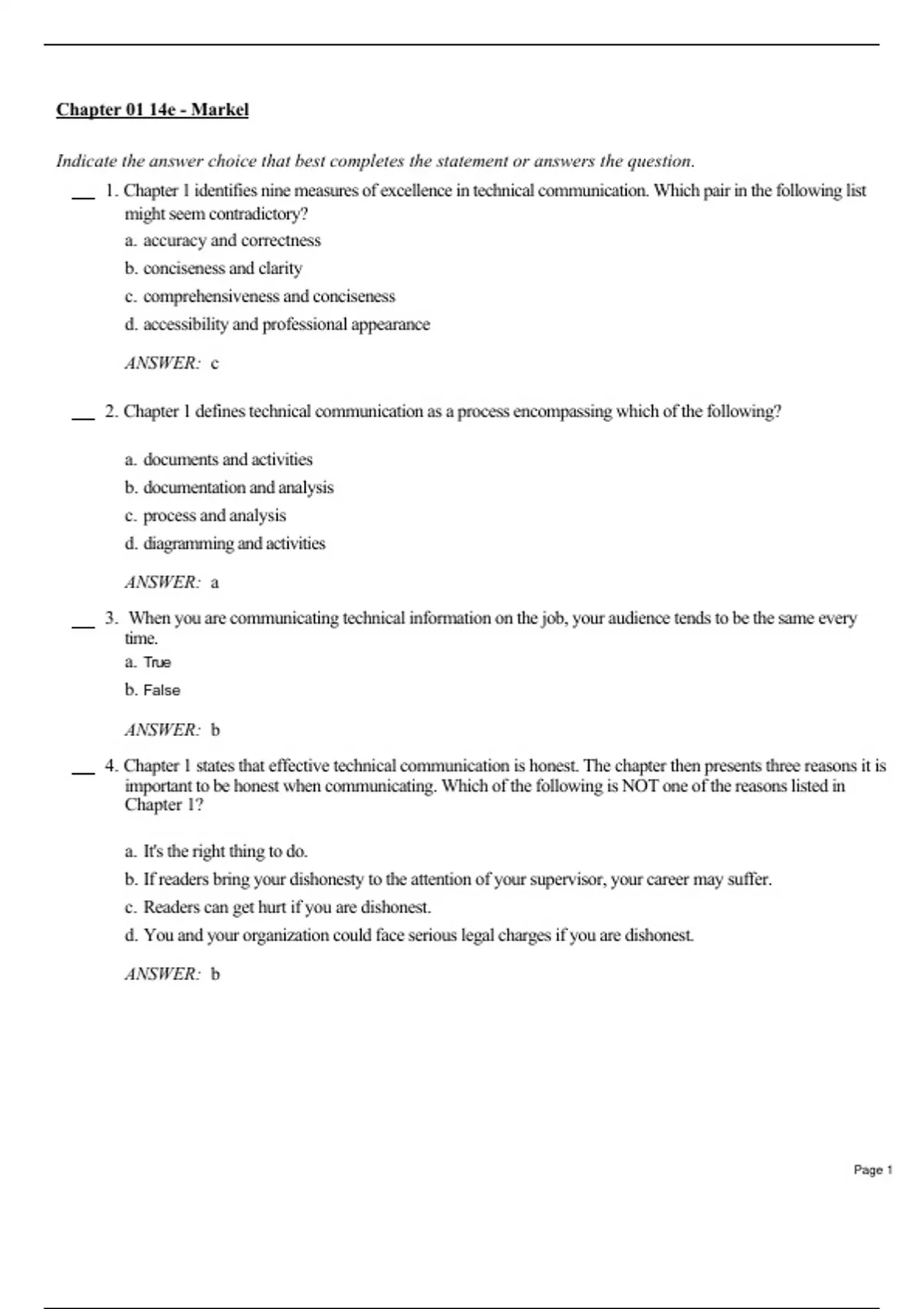 4. Chapter 1 states that effective technical communication is honest. The chapter then presents three reasons it is