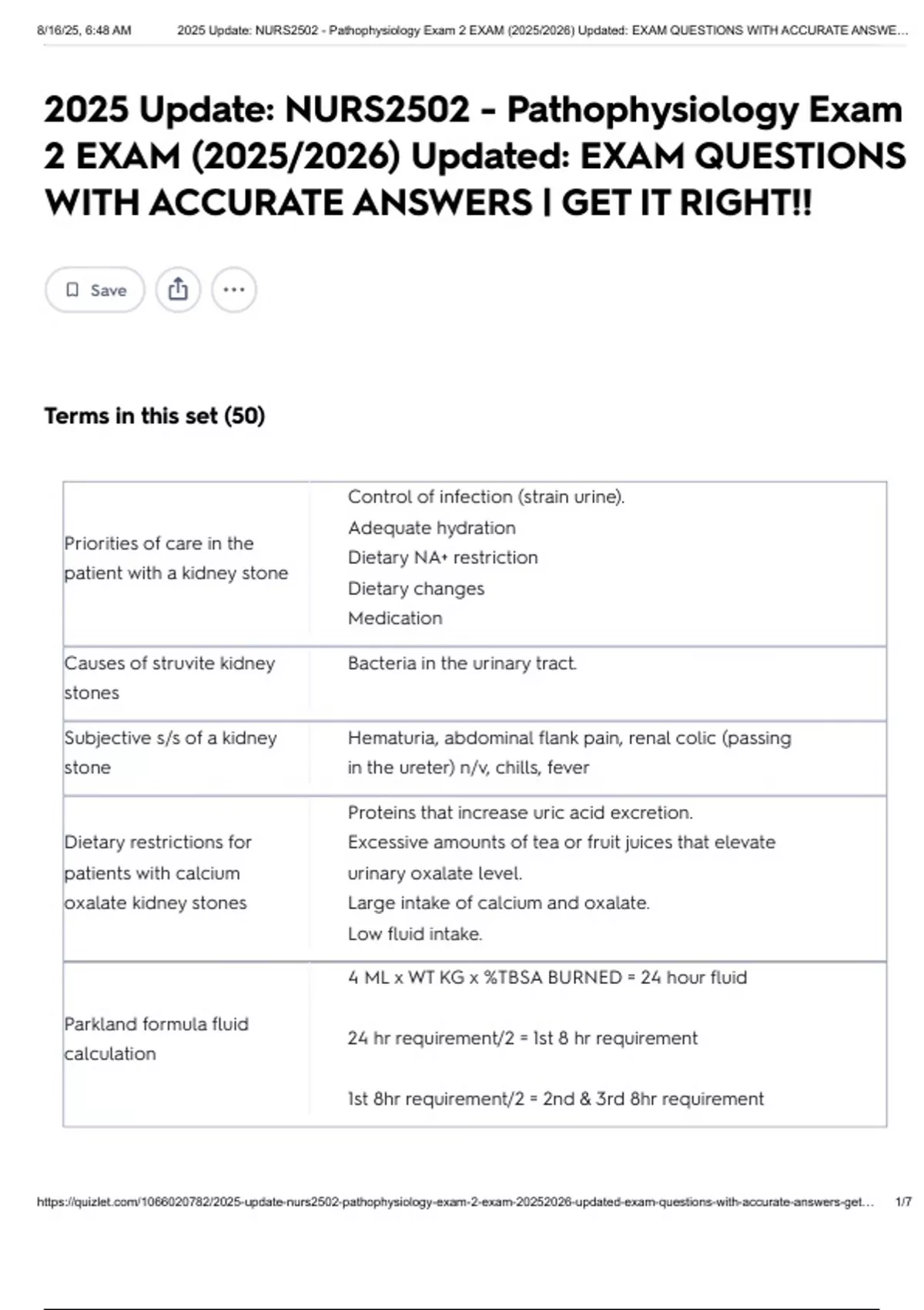 , 8/16/25, 6:48 AM 2025 Update: NURS2502 - Pathophysiology Exam 2 EXAM (2025/2026) Updated: EXAM QUESTIONS WITH ACCURATE ANSWE…
